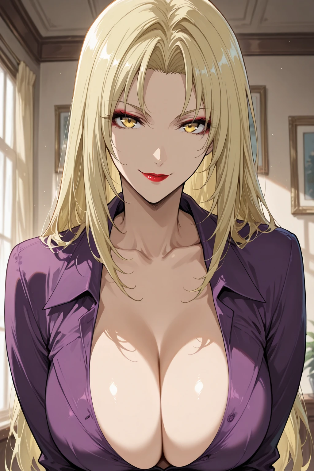 gbh3vn, blonde hair, long hair, yellow eyes, makeup, lipstick, red lips
