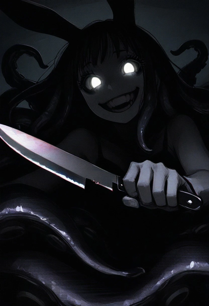 Experimental LoRA with focus on horror style. Trained mainly on images with dark palettes, strong contrasts, unnaturally gray skin, grain effects and glitch effects.