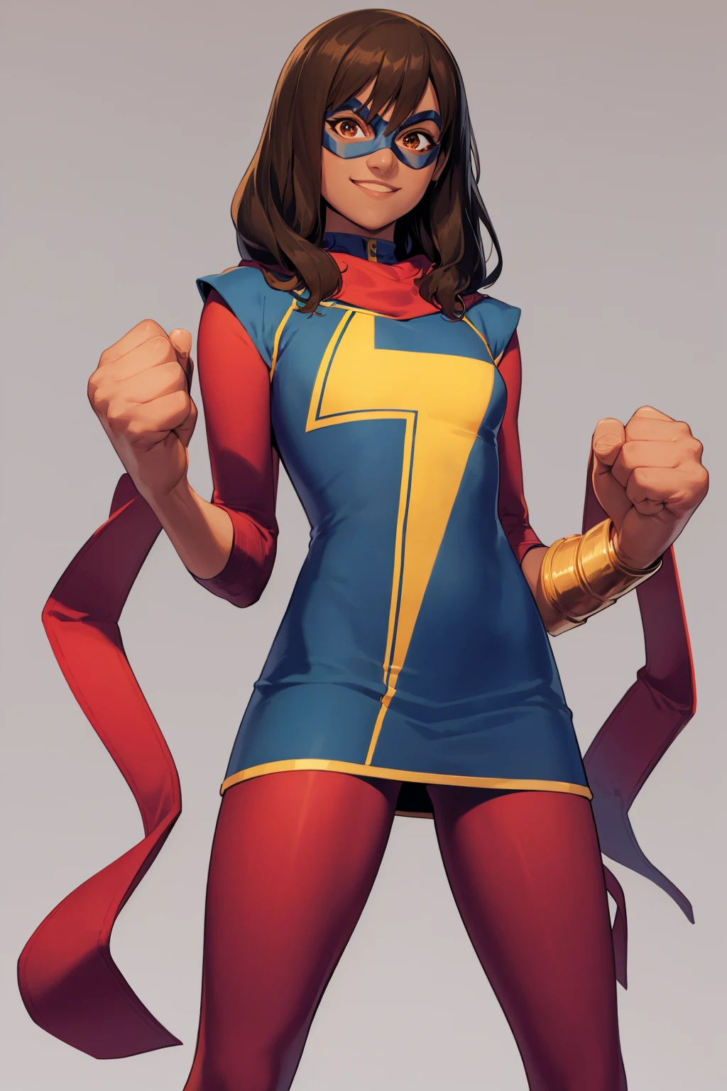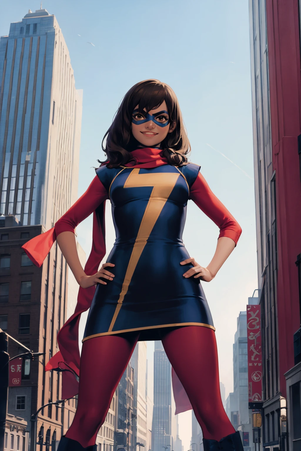 Other prompts: brown hair, long hair, brown eyes, dark skin, mask, red pantyhose, boots