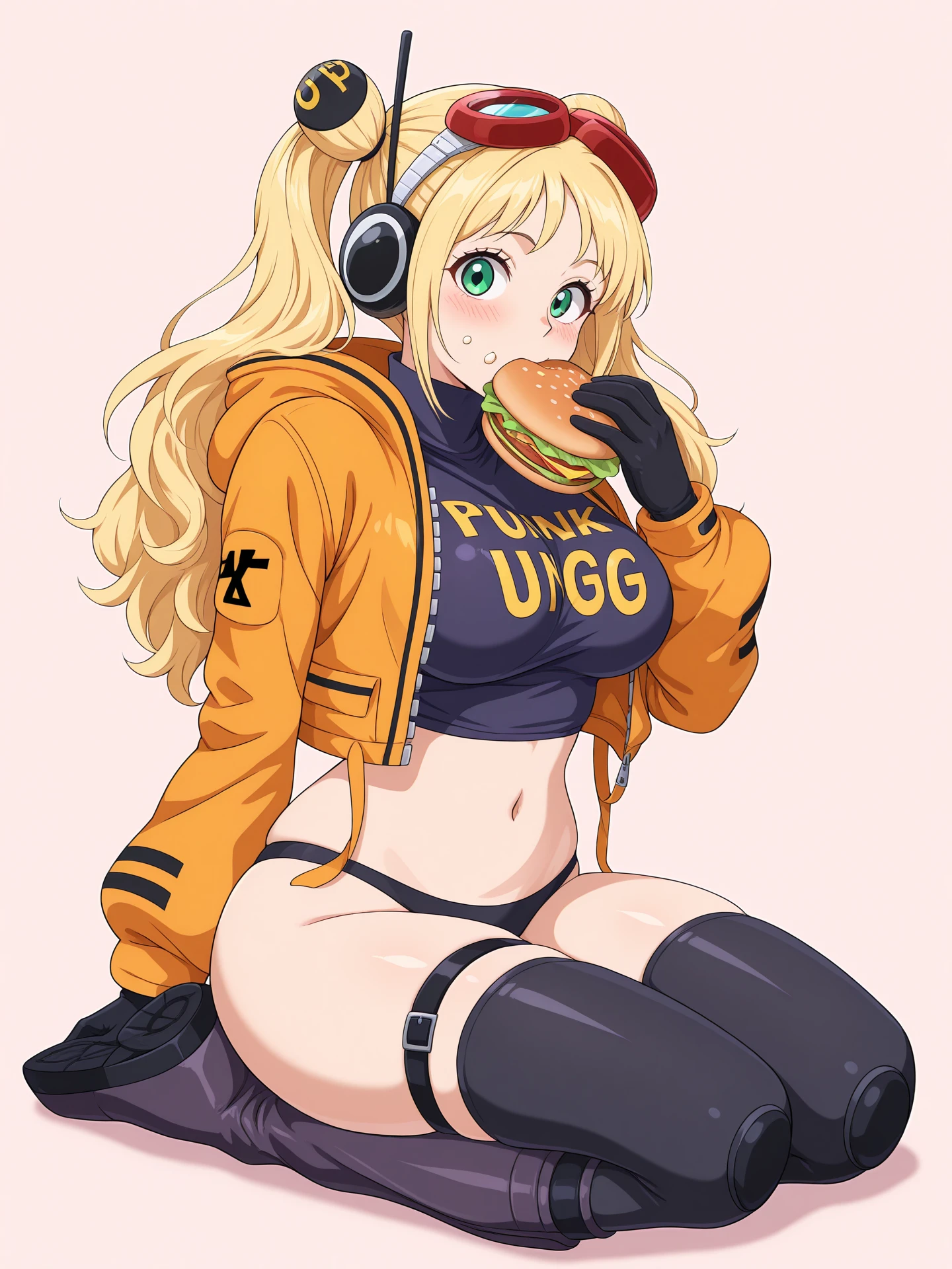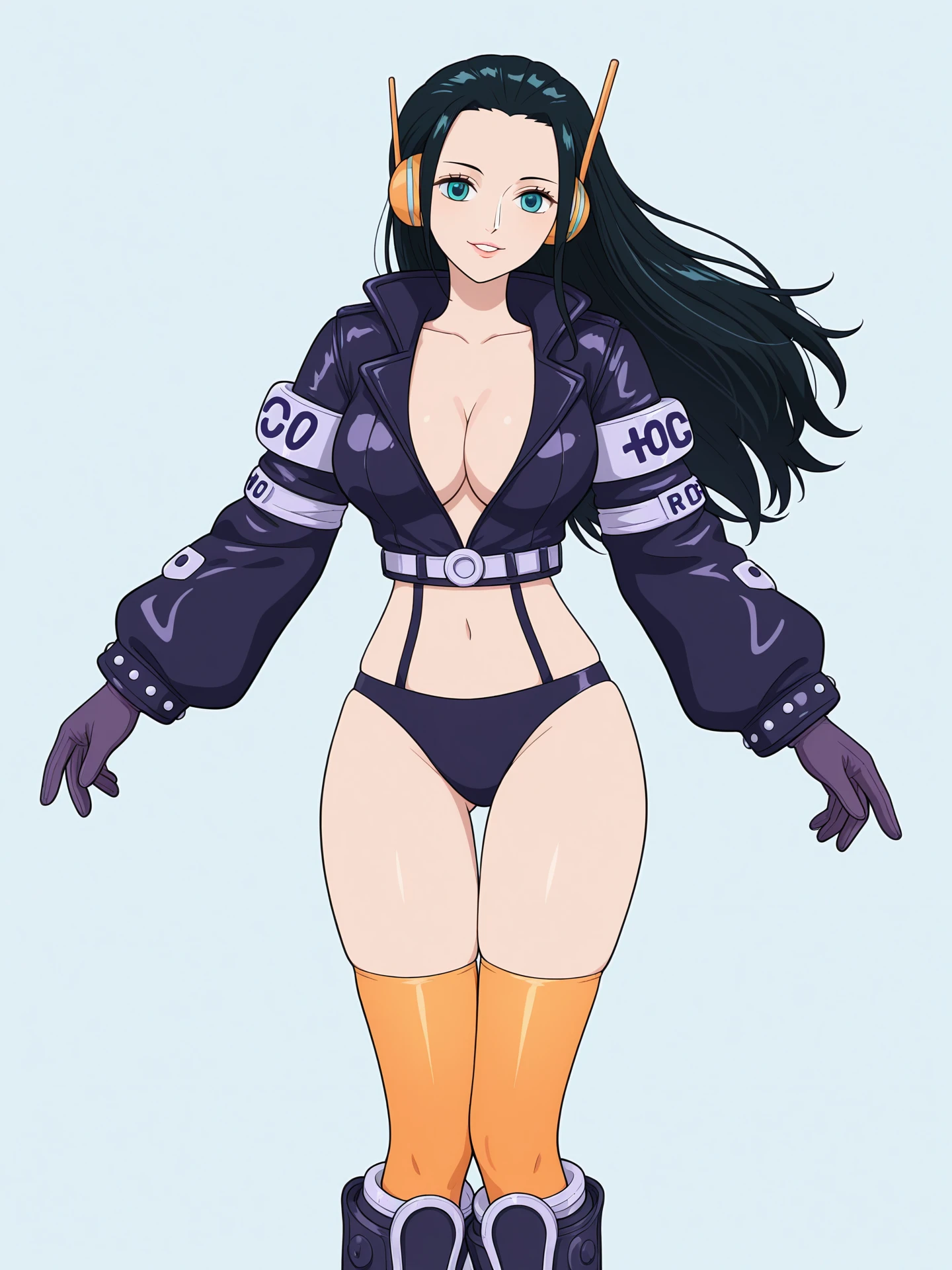 Outfit prompts: Headphones, underwear, panties, leotard, bodysuit, jacket, boots, gloves
