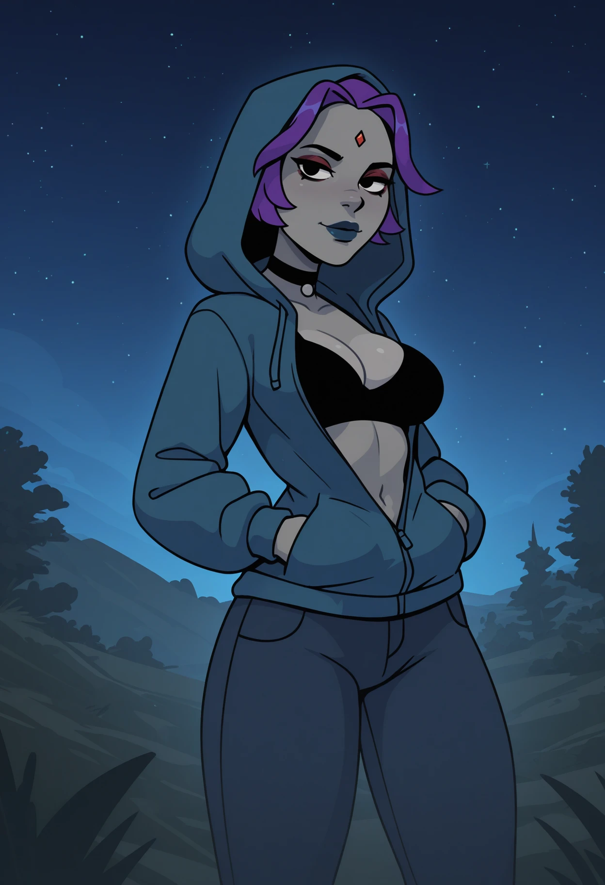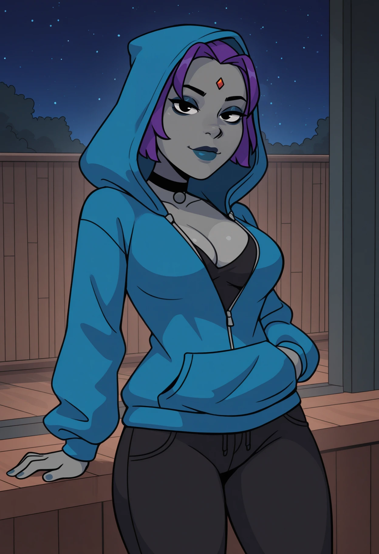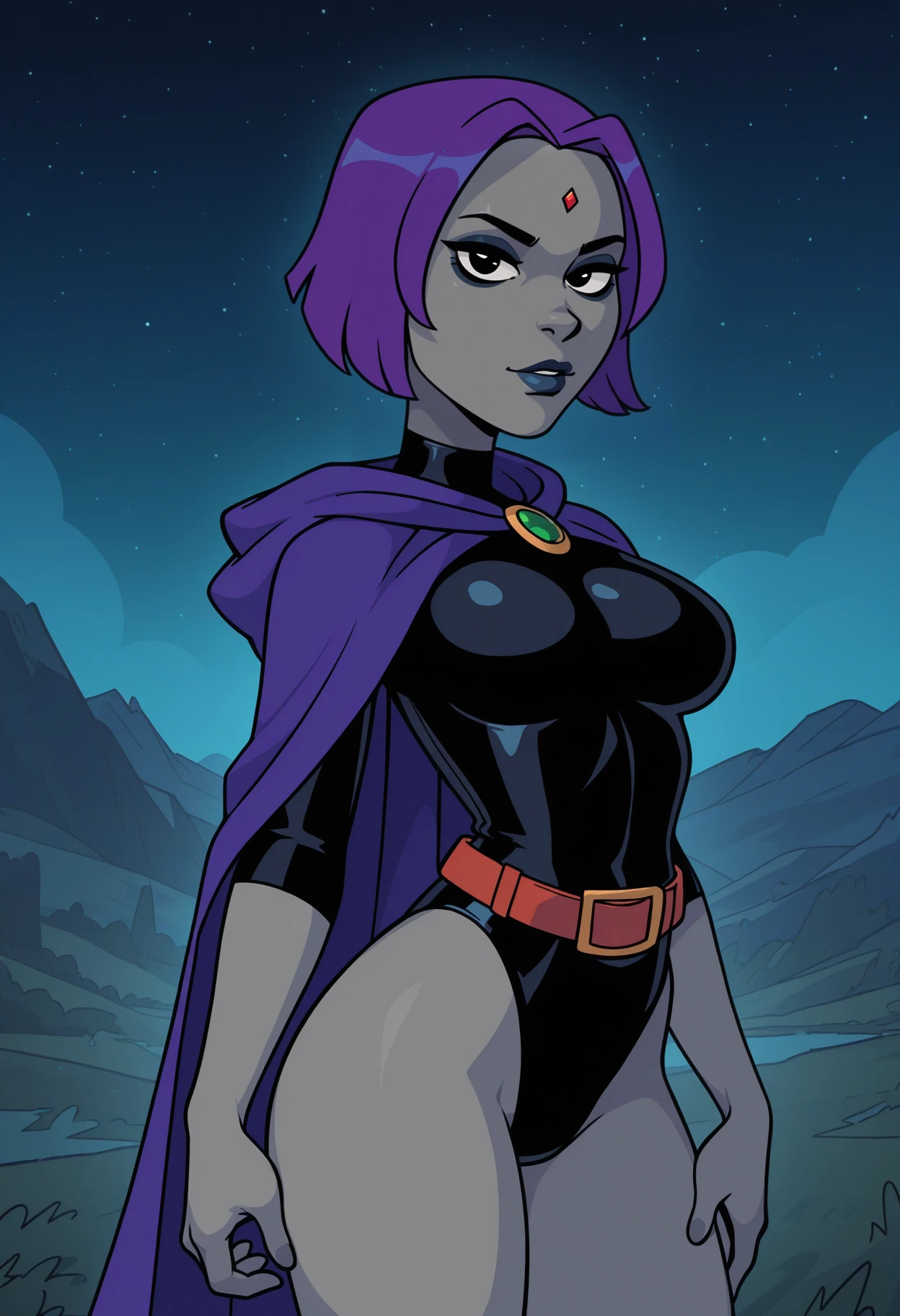 A Lora of Raven, Rachel Roth, human-demon hybrid, from Camp Pinewood visual novel created by VaultMan and DC original character created by writer Marv Wolfman.