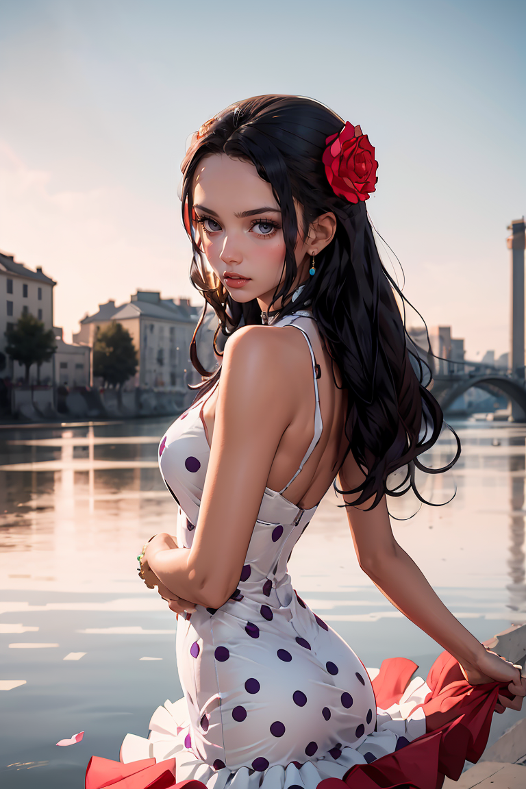 viola, hair ornament, flower, jewelry, dress, dotted dress