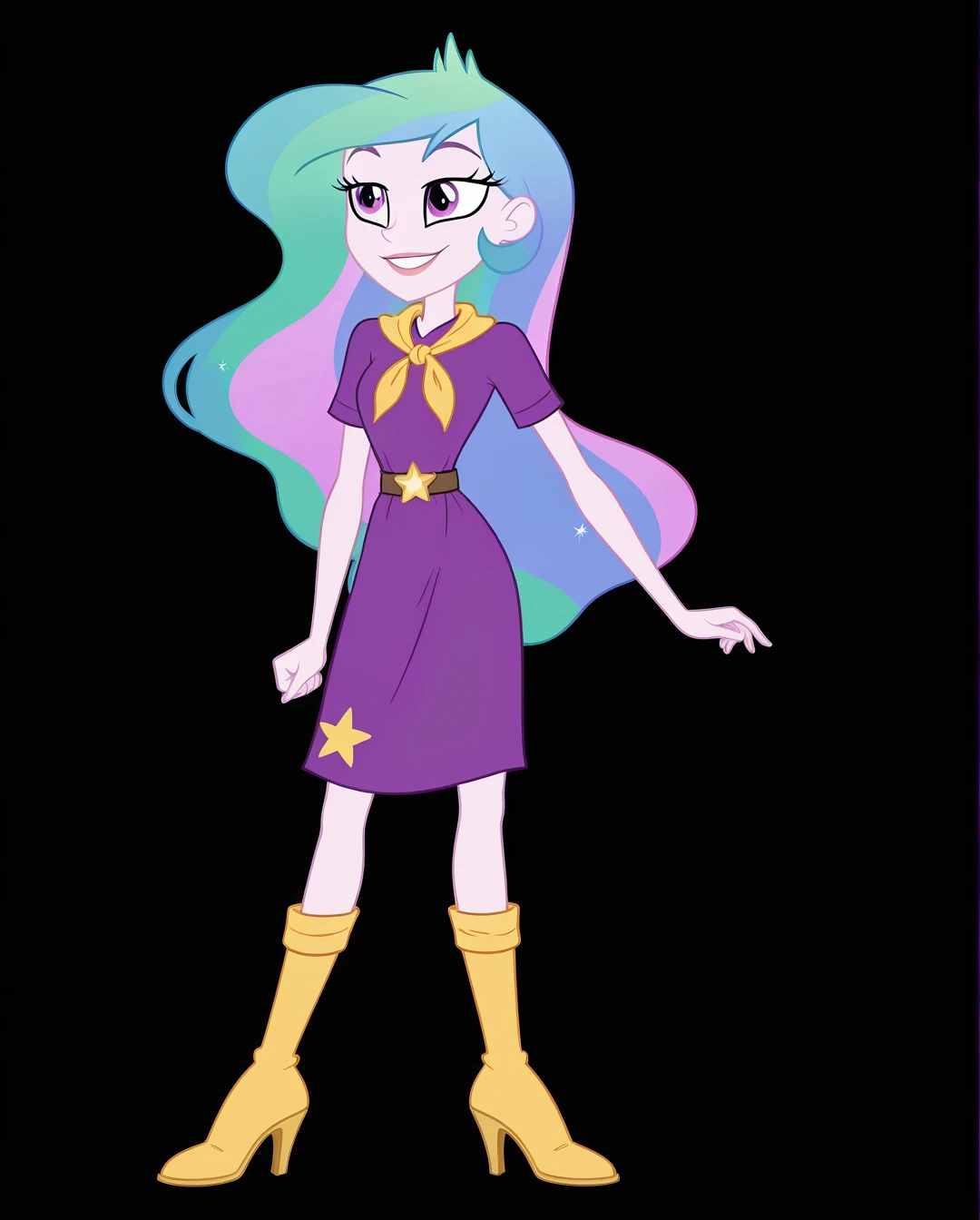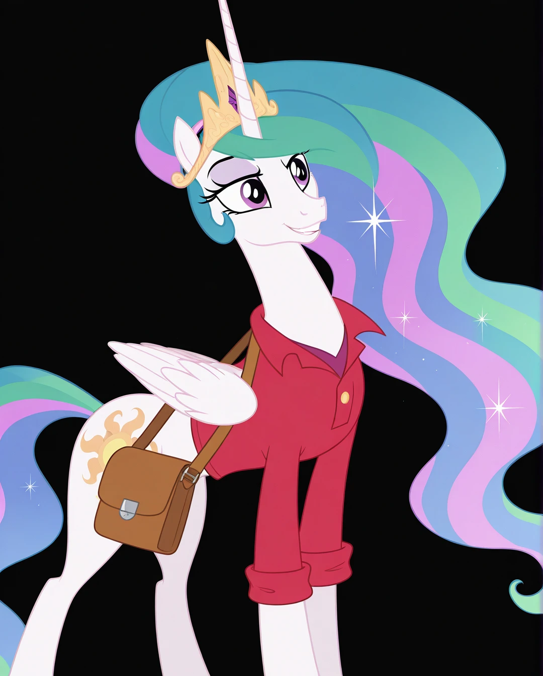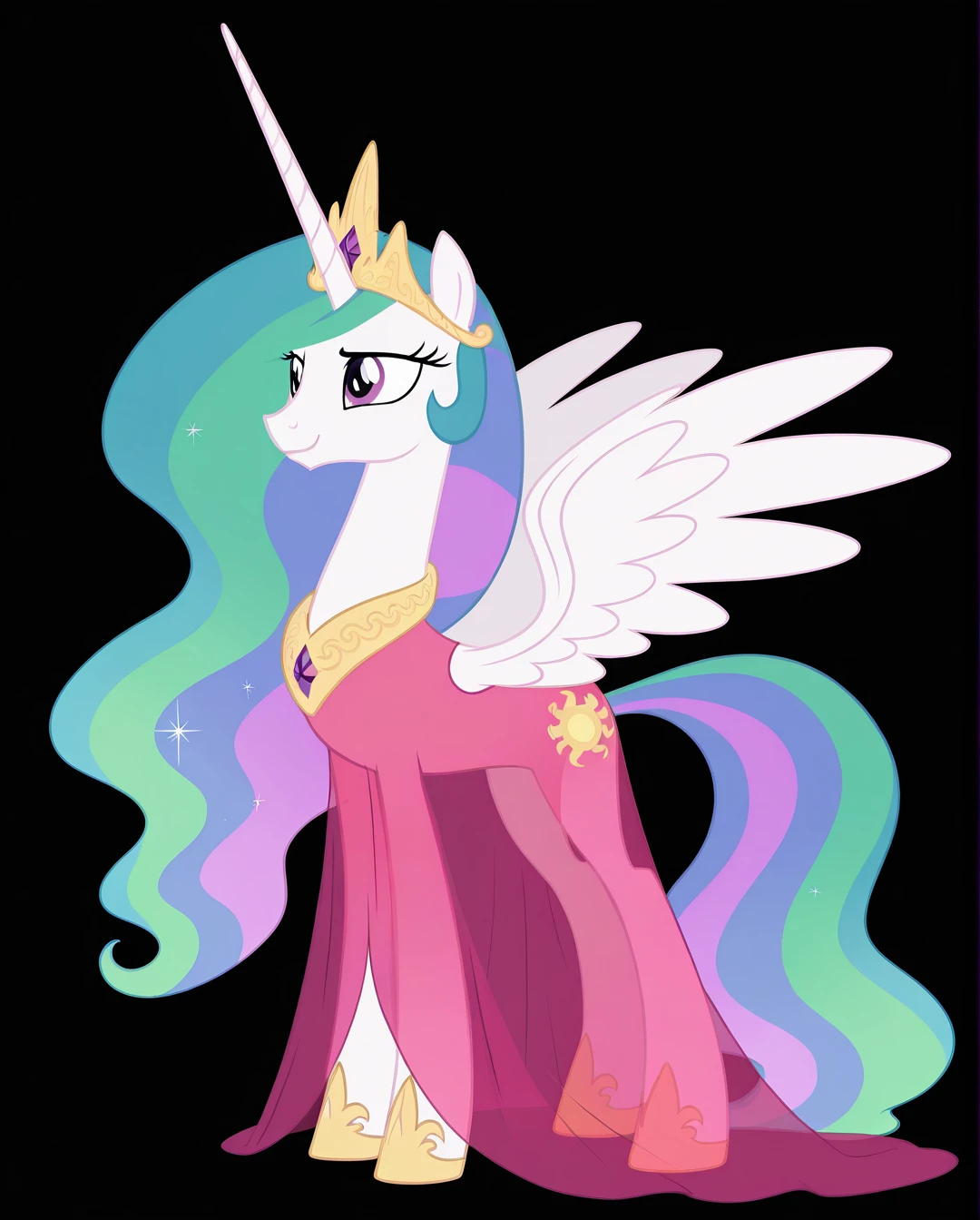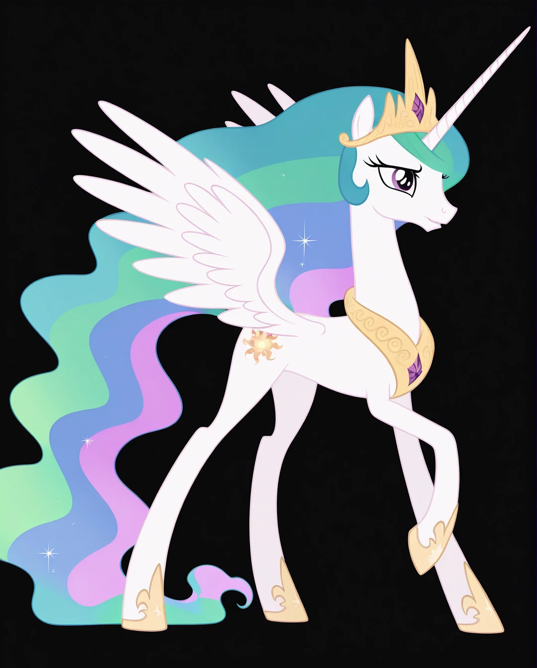This LoRA faithfully recreates Princess Celestia, the wise, benevolent, and eternally graceful ruler of Equestria from My Little Pony: Friendship is Magic (voiced by Nicole Oliver). As the co-ruler of Equestria alongside her sister Luna, Celestia is the regal, motherly figure who raises the sun each day, mentors Twilight Sparkle, and embodies harmony, patience, and quiet power. She is calm, kind, subtly humorous, and carries an aura of ancient wisdom — yet she also has moments of playful mischief, vulnerability, and deep love for her subjects. The model locks her canonical alicorn design from Seasons 1–9: flowing ethereal mane, golden regalia, and perpetual serene majesty.