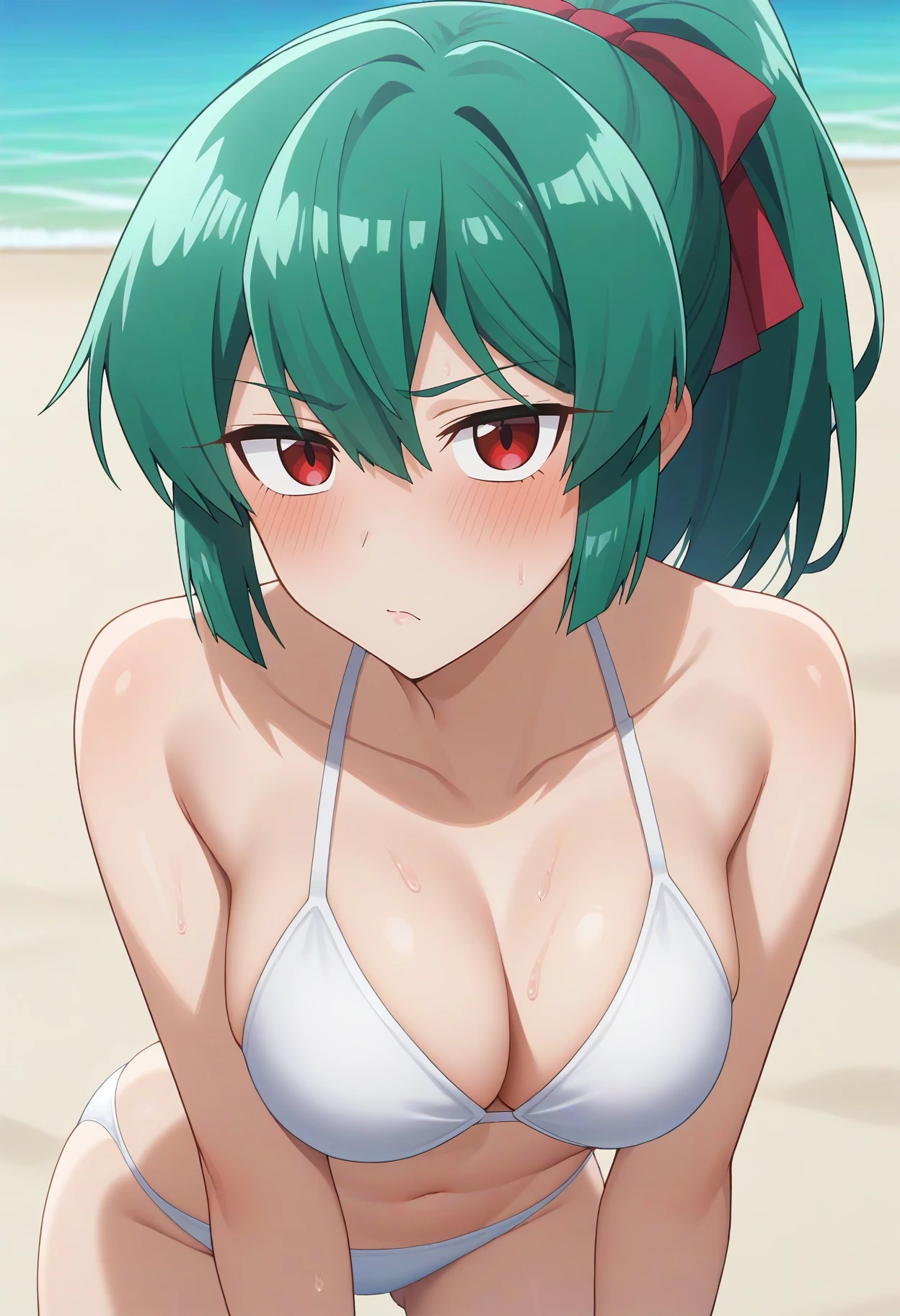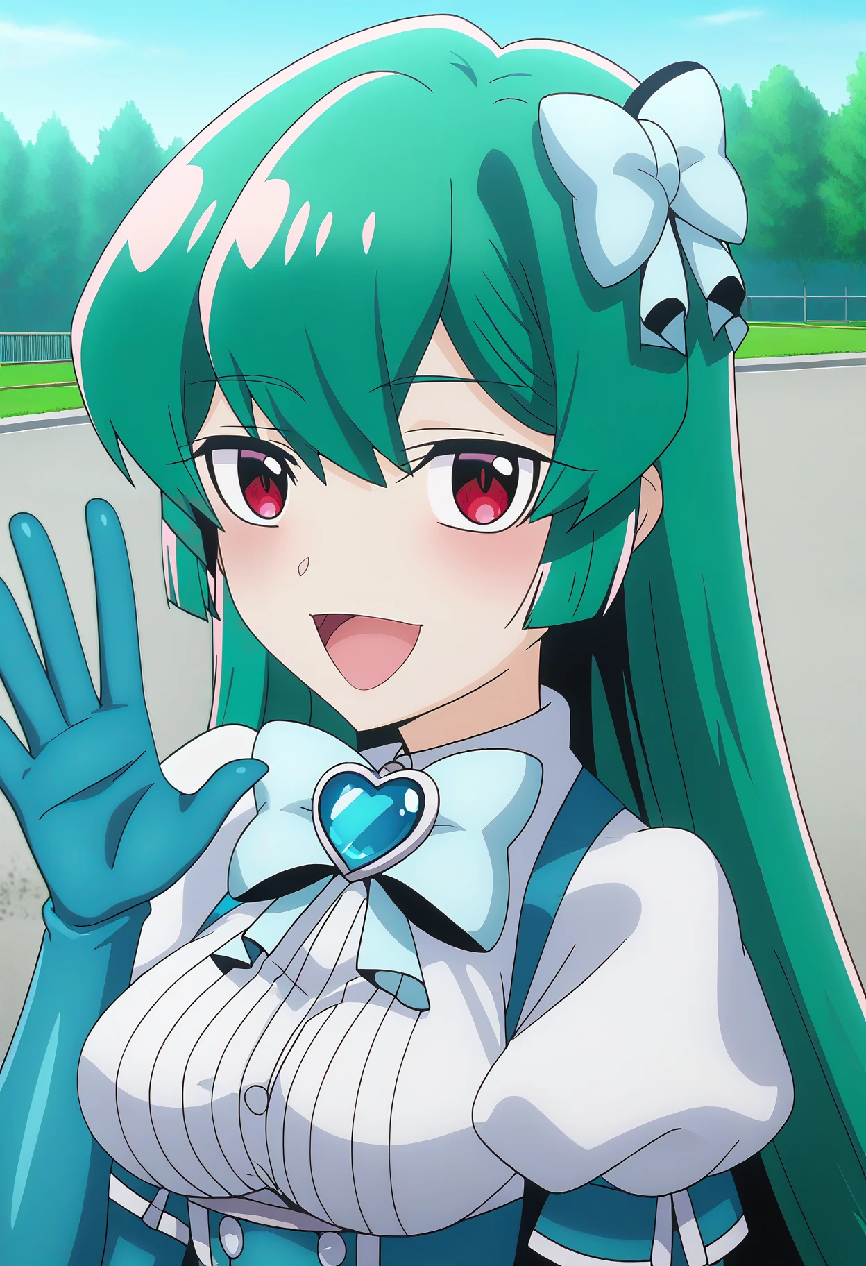 minakami sayo, green hair, long hair, red eyesMagia Azul outfit :