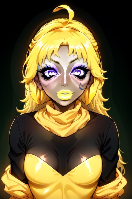Trigger + Appearance: yang xiao long, ahoge, purple eyes, large breasts