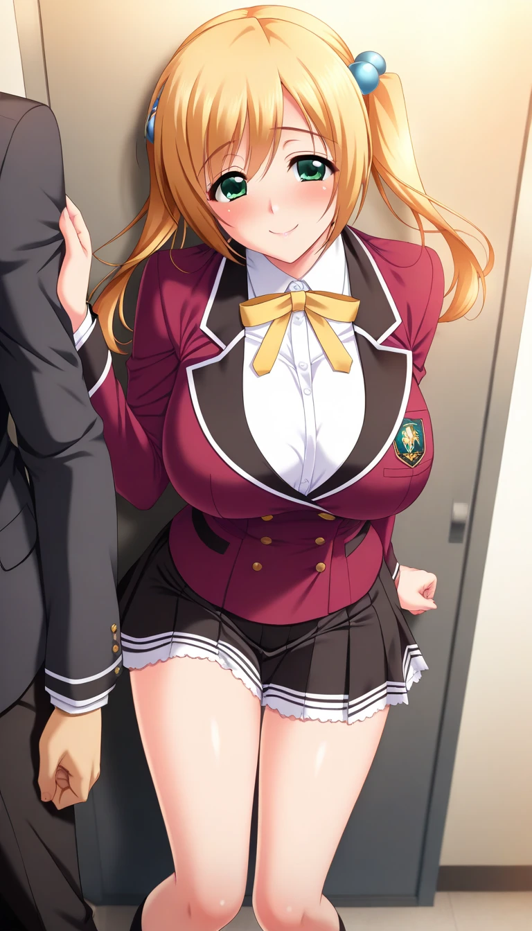 2. Kohinata Umi, green eyes, blonde hair, twin tails, v bangs, hair bobbles
