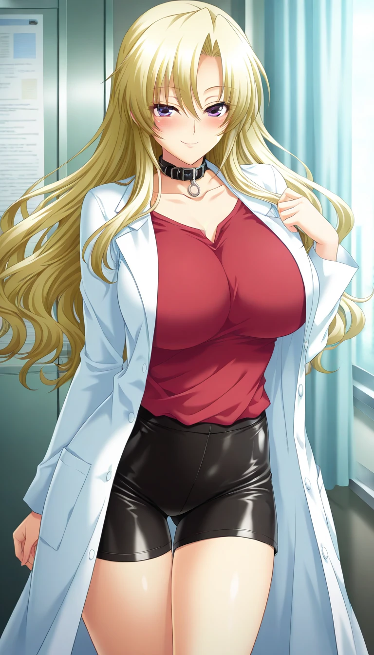 5. Makihara Rieko, violet eyes, blonde hair, long hair, curtained, sidehair, spiky bangs, wavy