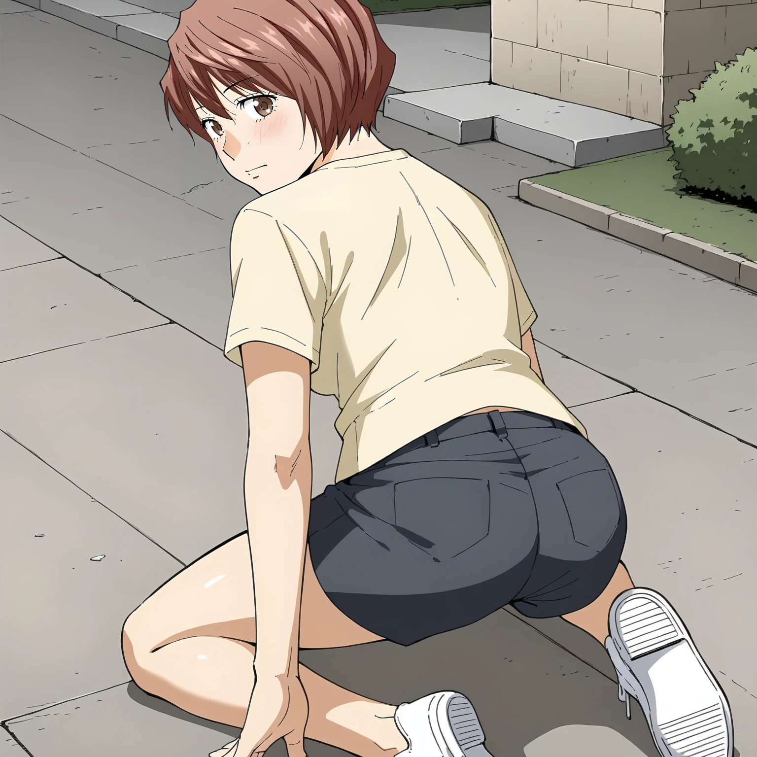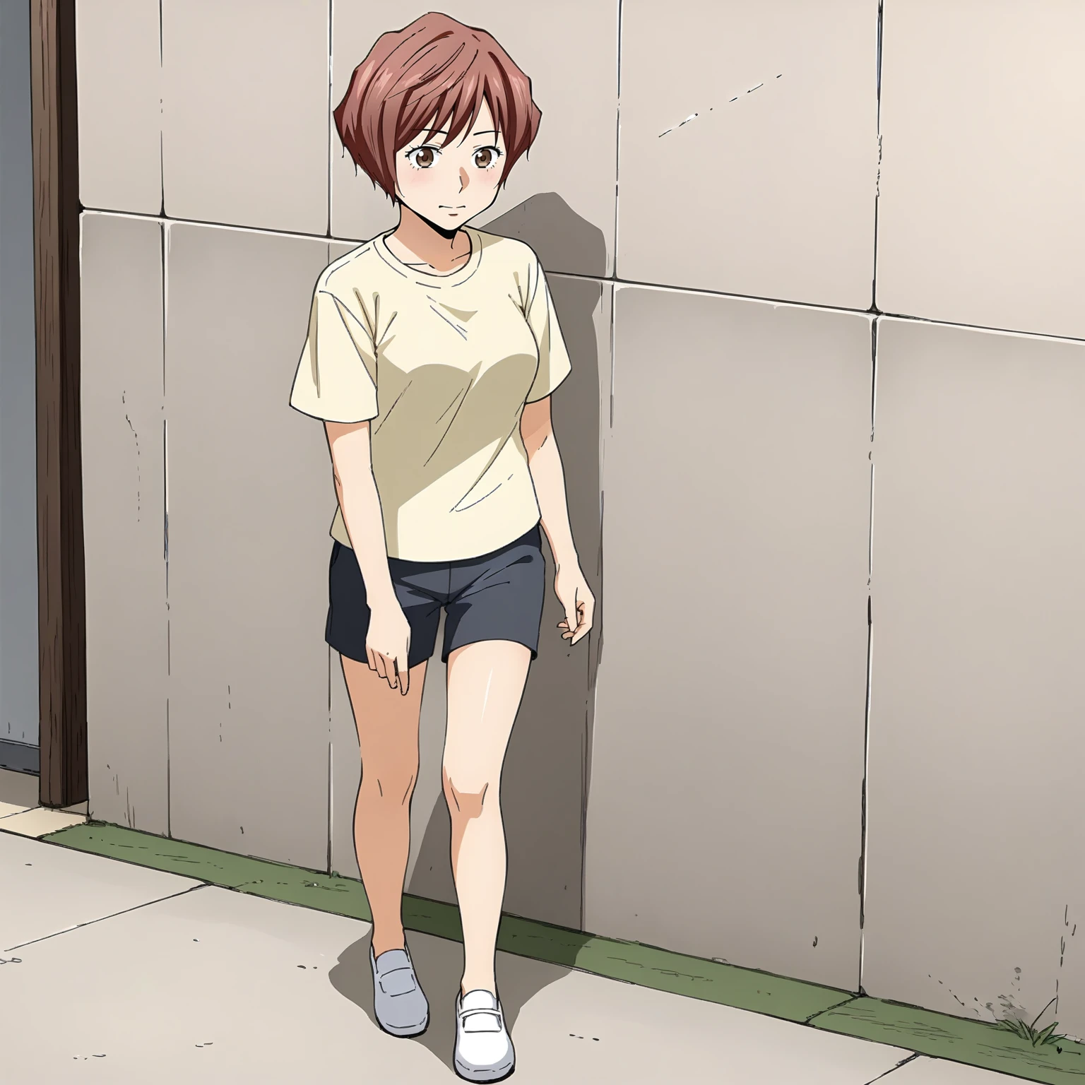 Takeuchi,1girl,red hair,short hair,brown eyes, medium breasts,