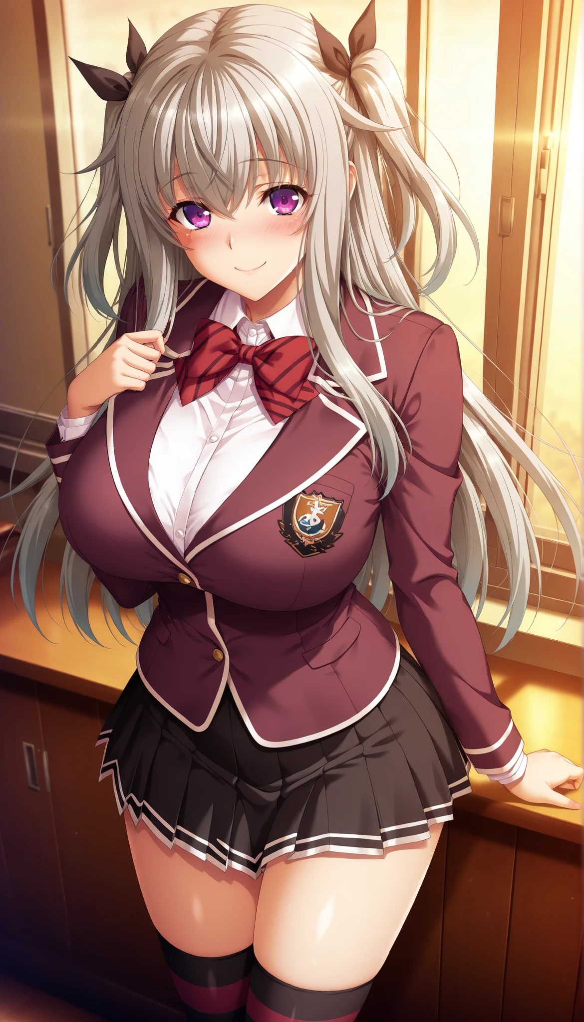 Yumihara Sayuki, twin tails, long hair, grey hair, violet eyes, black hair ribbon