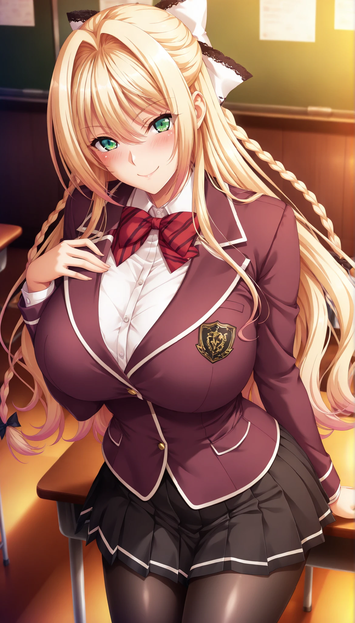 Onoura Rikka, blonde hair, braids, green eyes, white hair bow