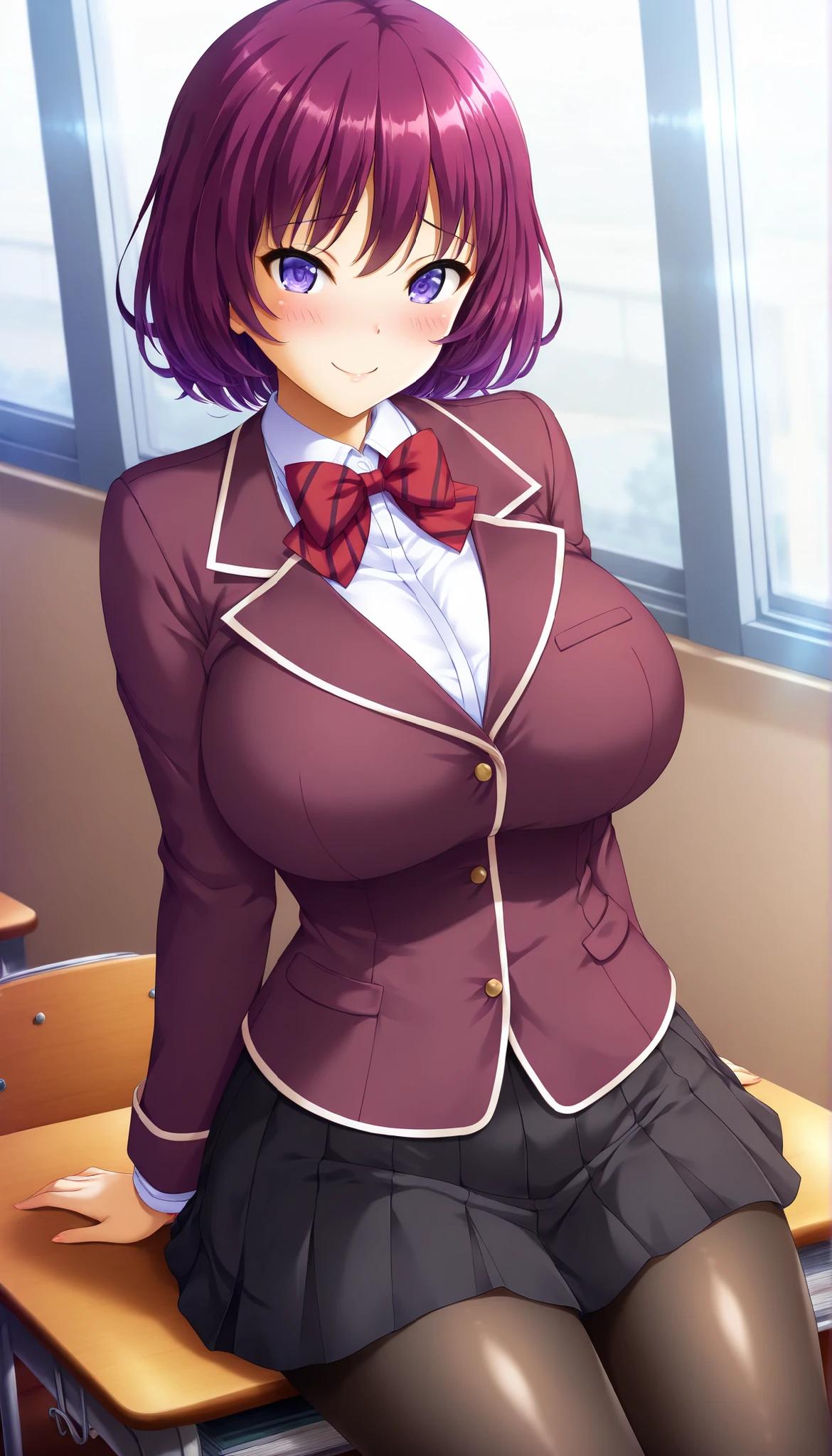 Adachi Miori, violet hair, short hair, purples eyes