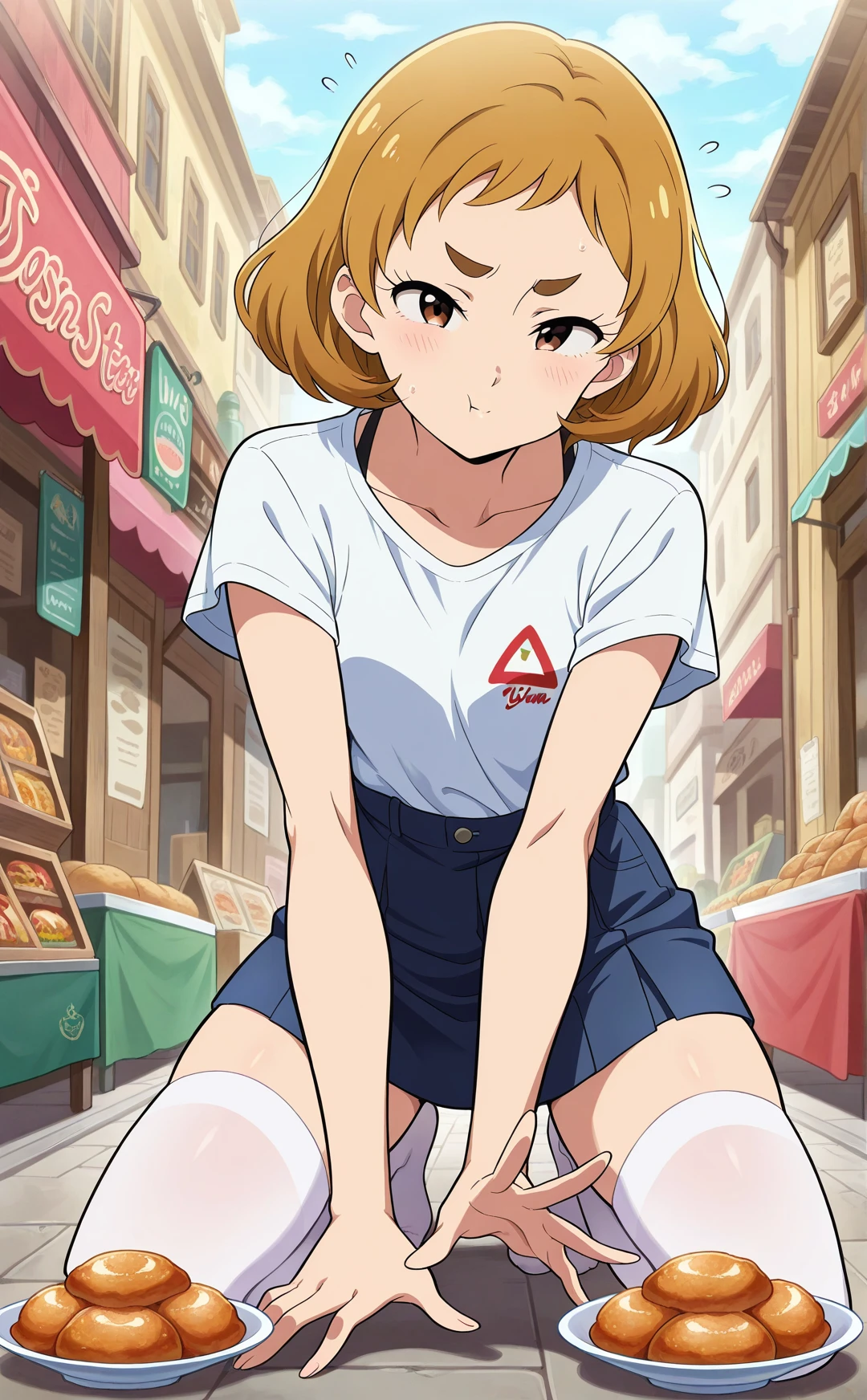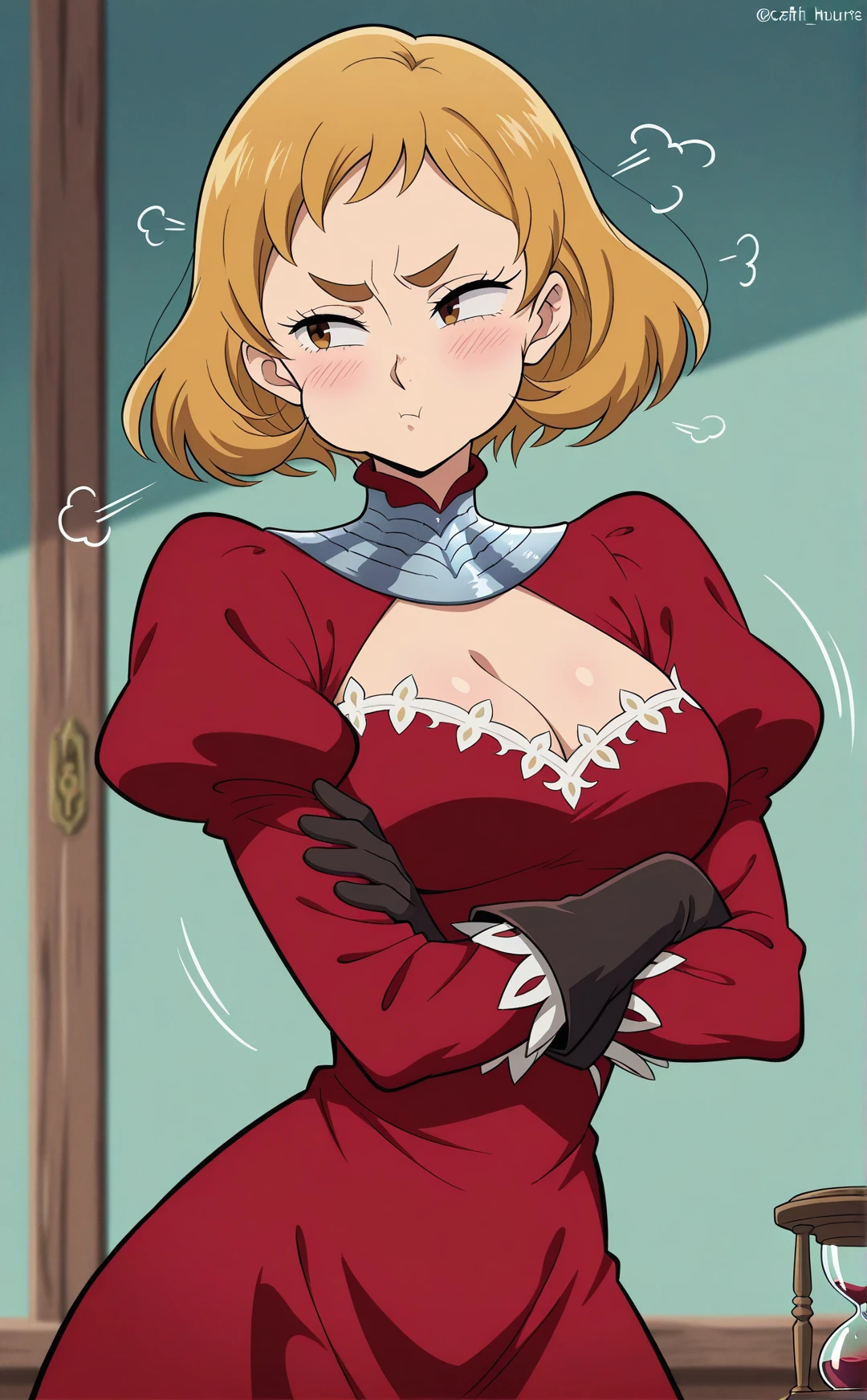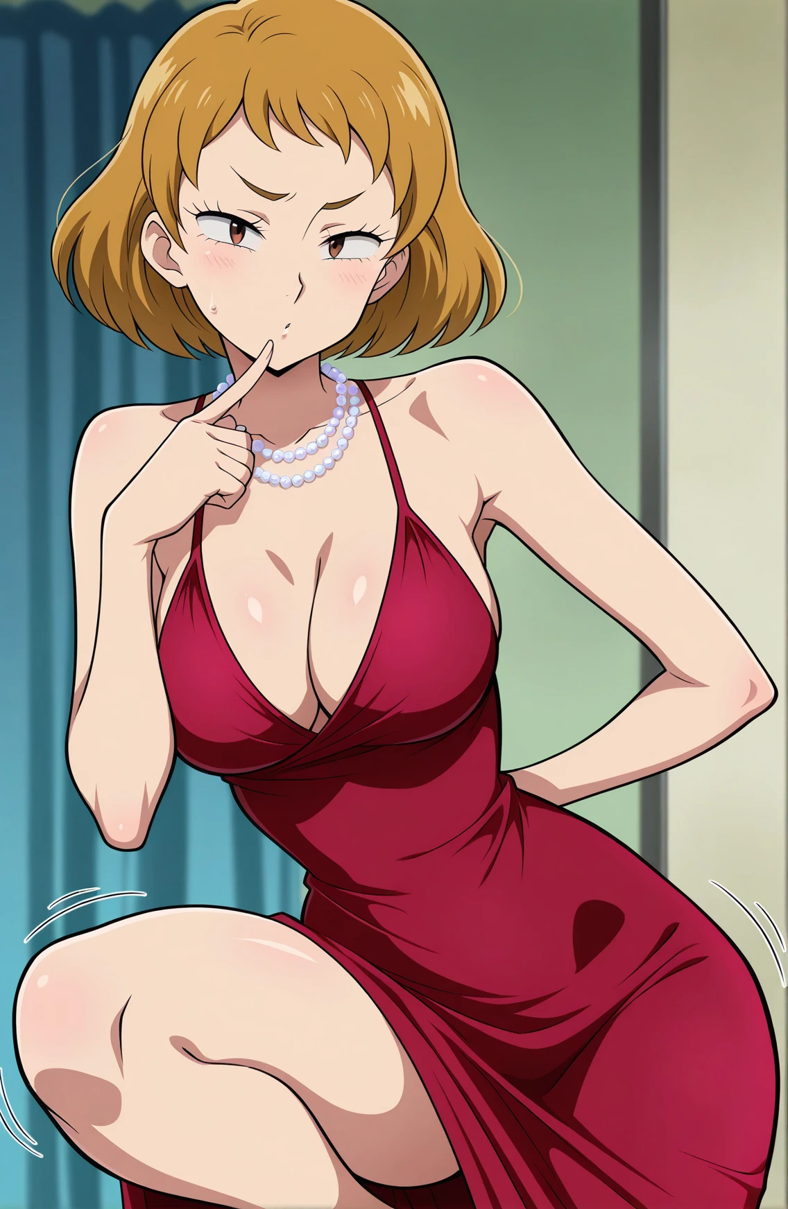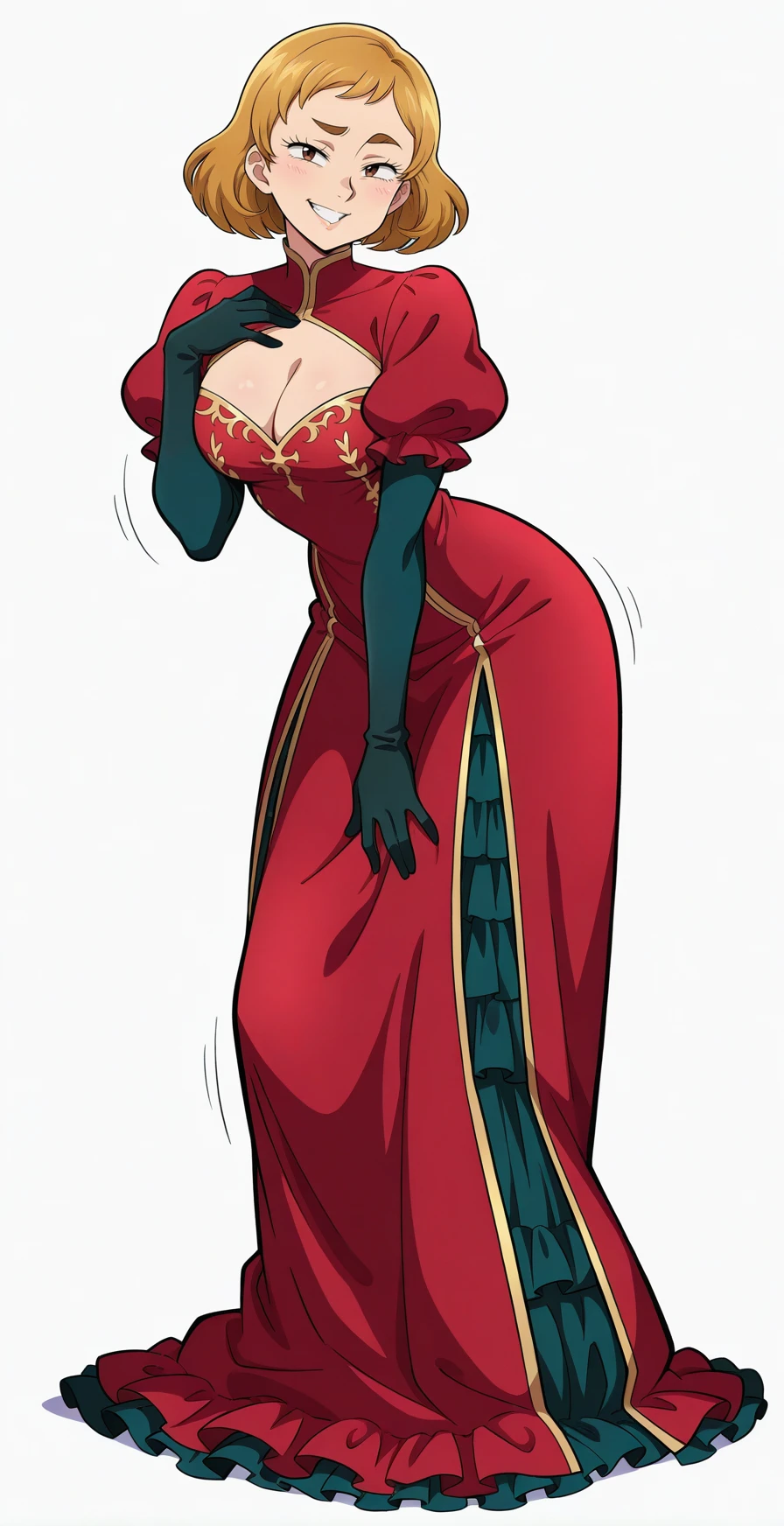 Official style, Vivian, 165cm, Slim, brown eyes, short hair, blond hair, brown hair, thick eyebrows,