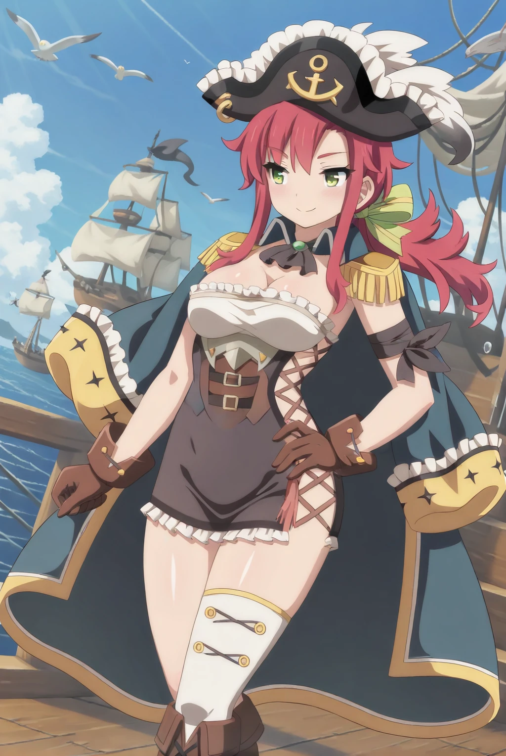 Outfit: unworn_jacket, pirate, pirate hat, cleavage, single thighhigh, boots, brown gloves