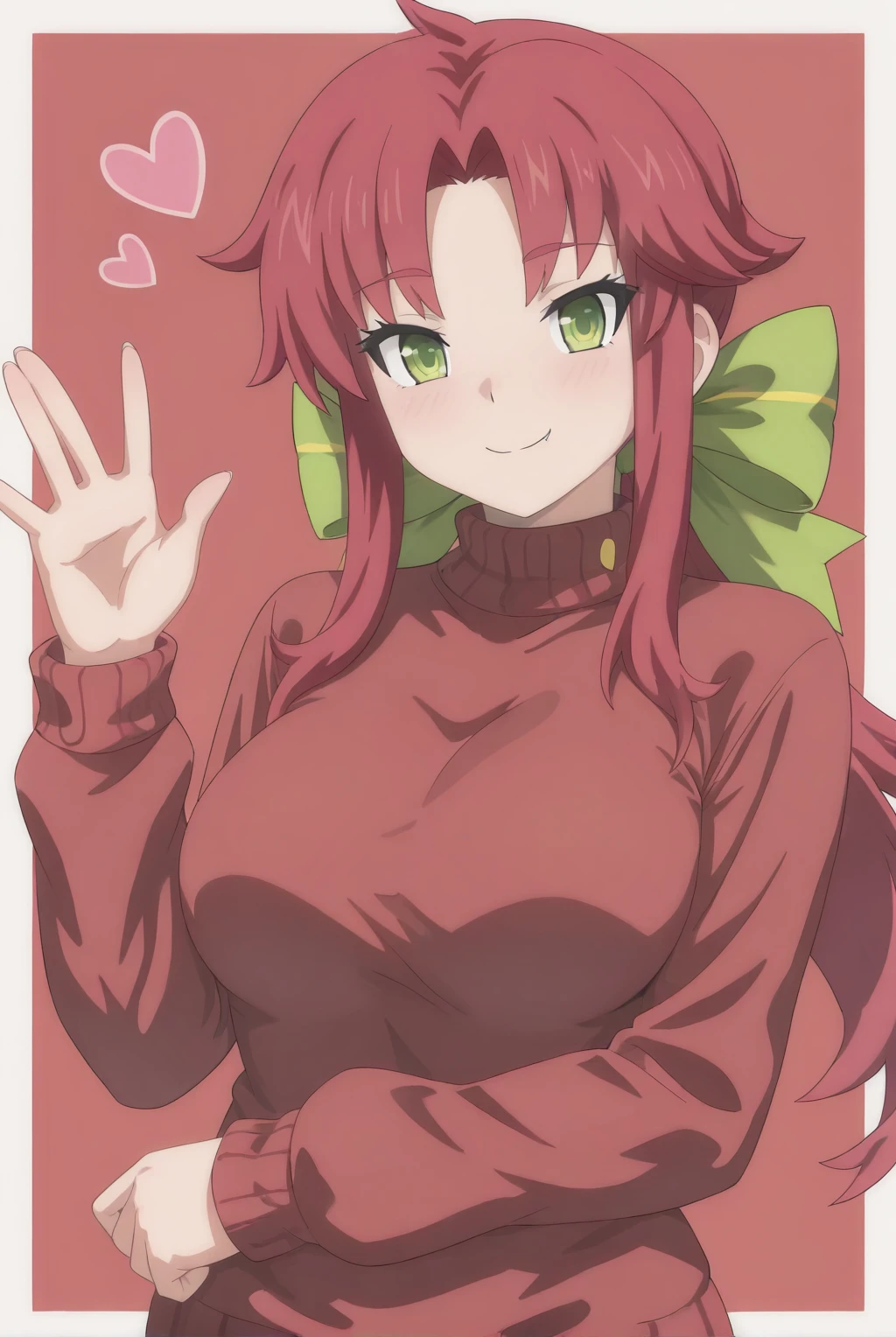 Captain_bonny_(sakura_dungeon), large breasts, green eyes, long hair, red hair, ponytail, green ribbon