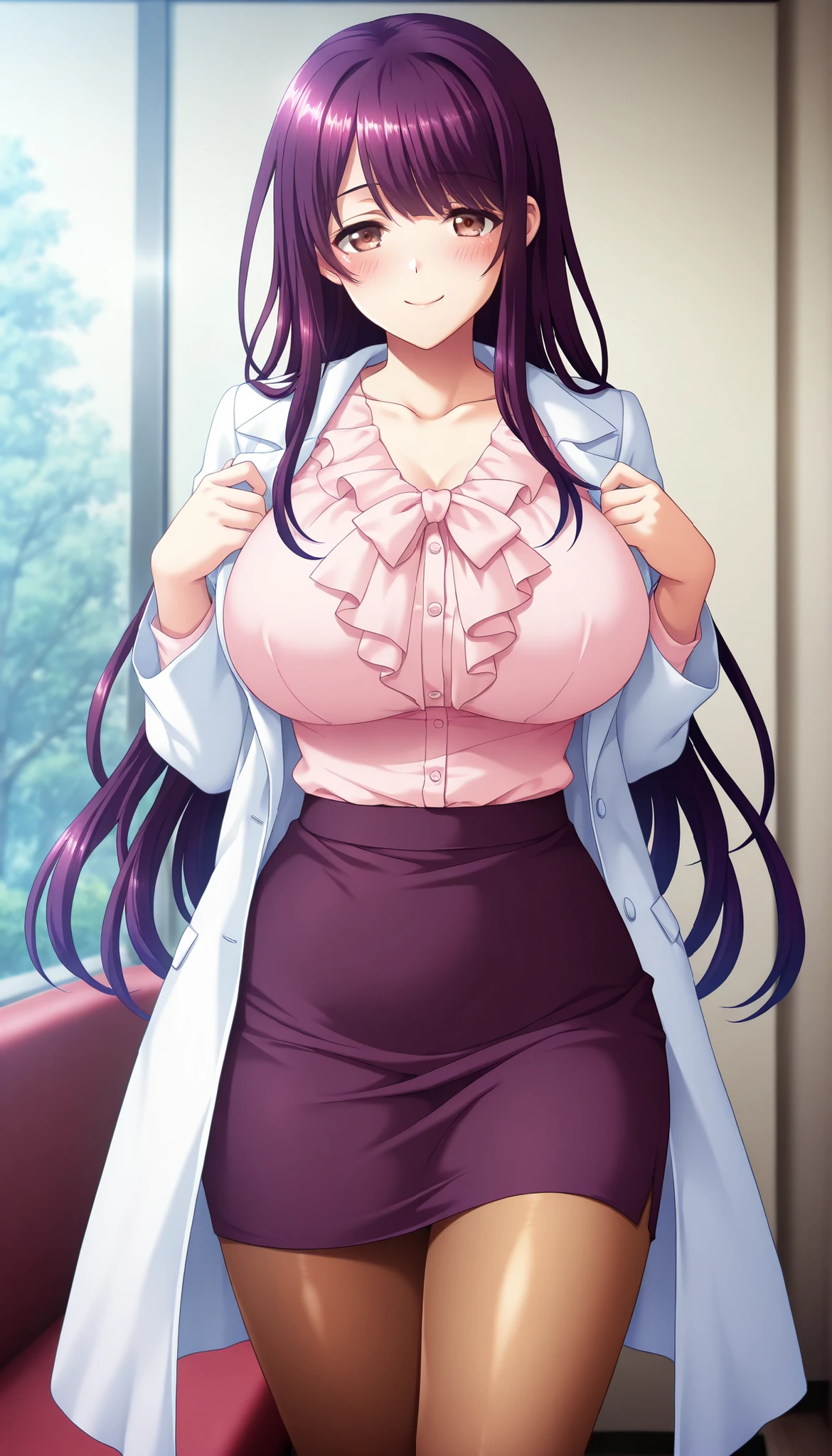 - Haruoka Kazusa, violet hair, long hair, brown eyes