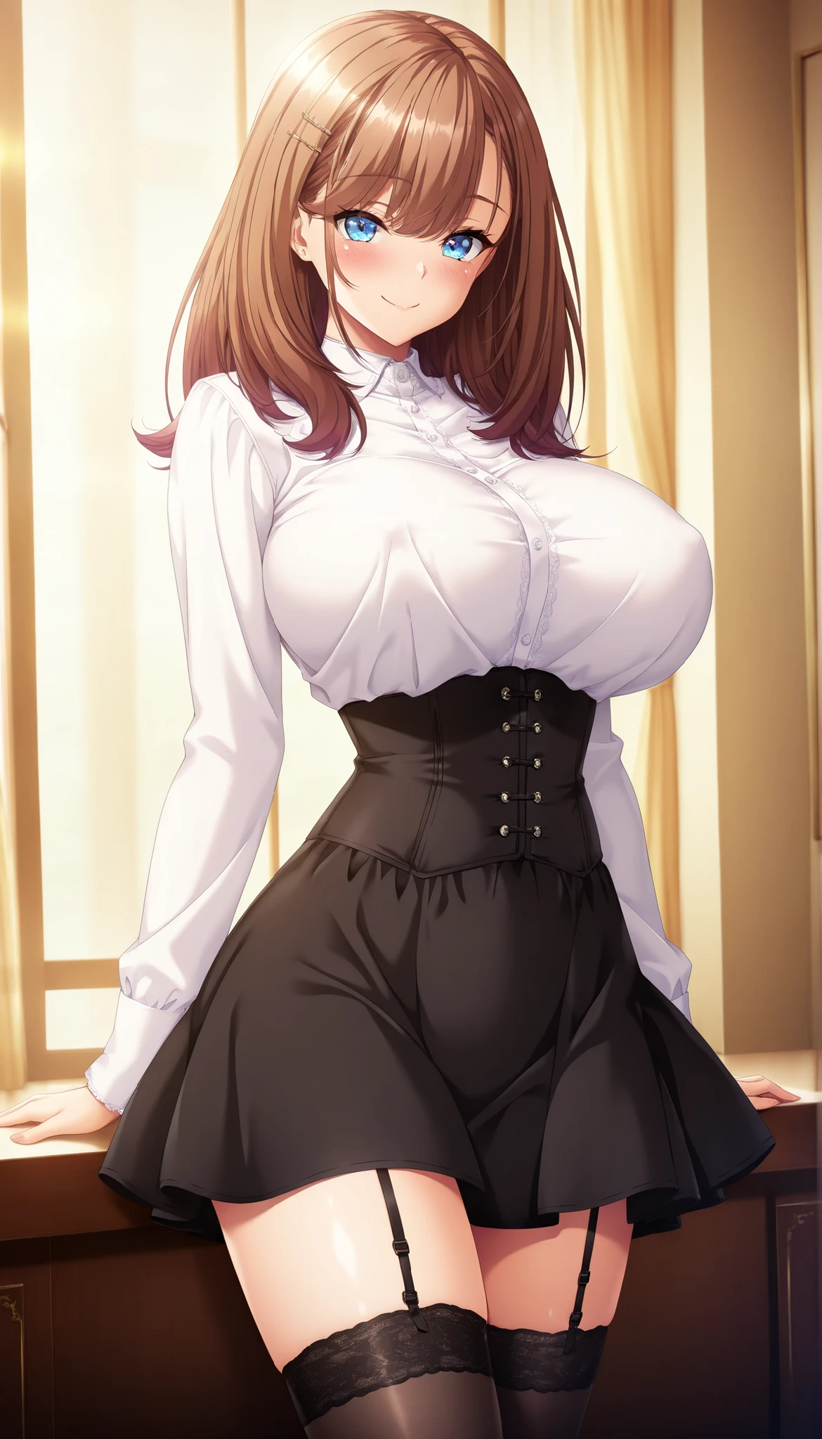 - Kitashirakawa Yuno, brown hair, shoulder-length hair, blue eyes