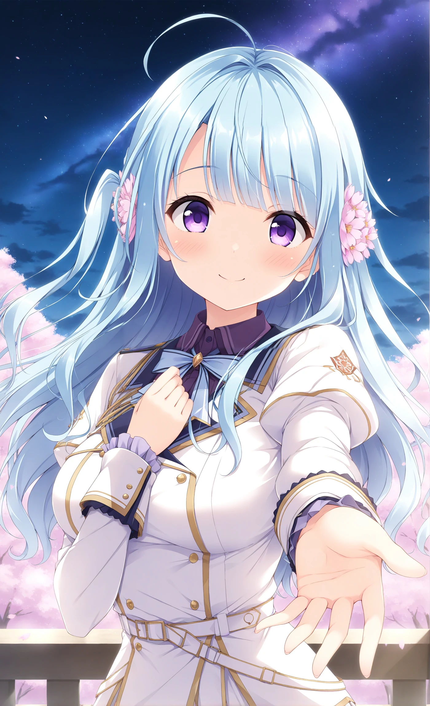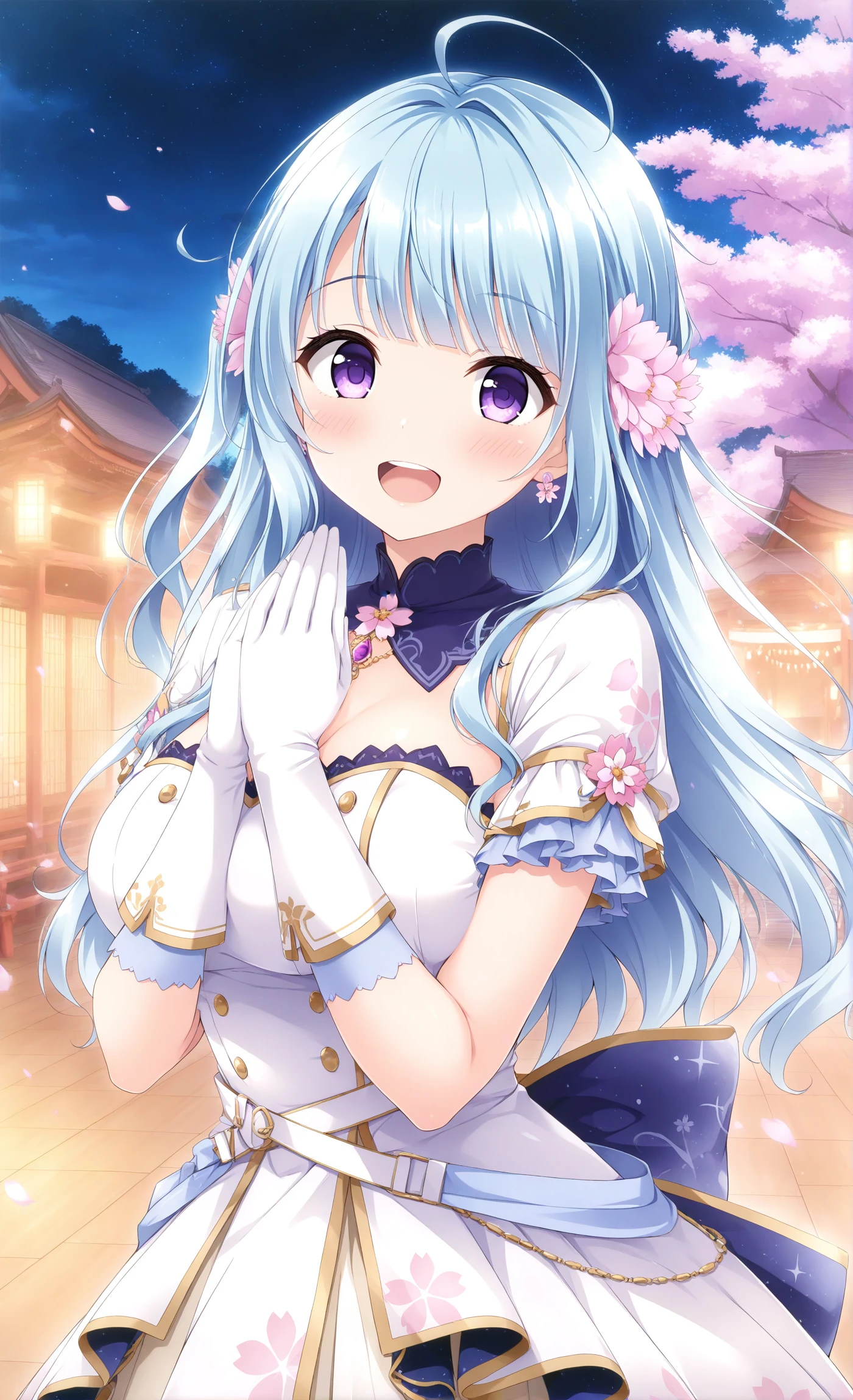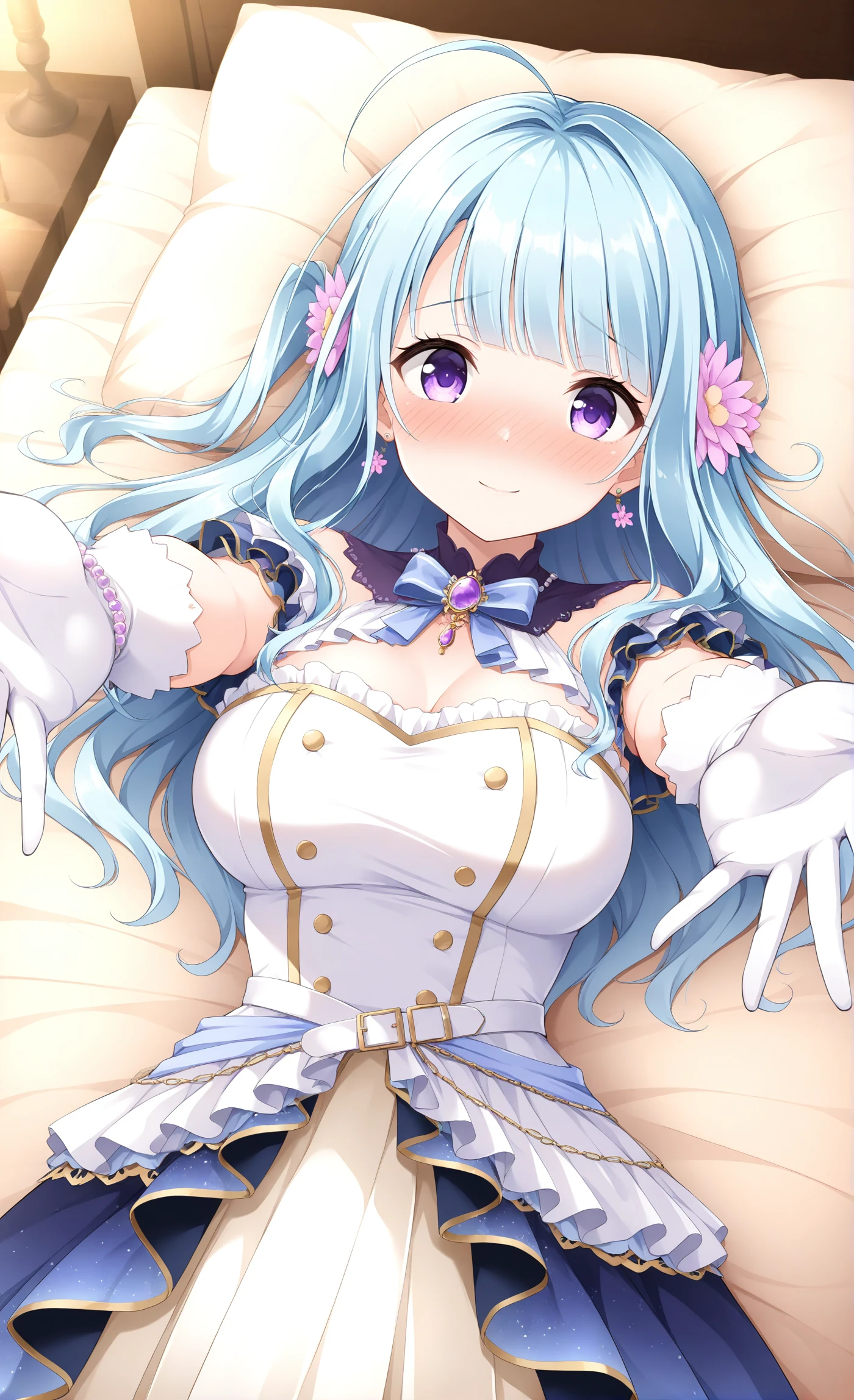 Base: Kanade,ahoge,blunt bangs,blue hair,long hair,purple eyes,hair flower,hair ornament,
