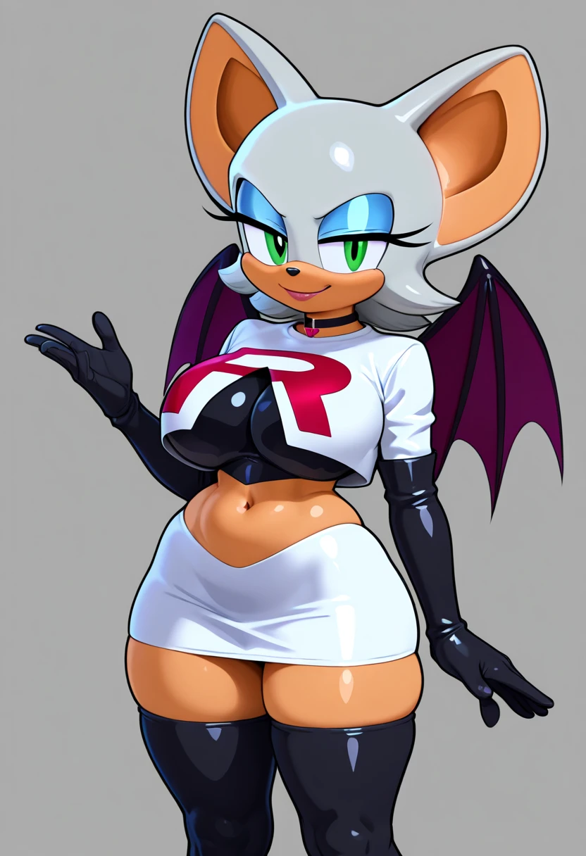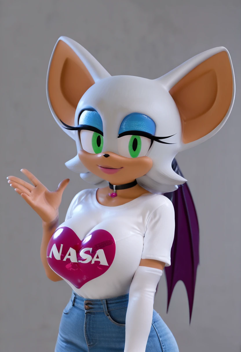 zzRouge, green eyes, blue eyeshadow, short hair, white hair, bat ears, animal nose, bat wings,