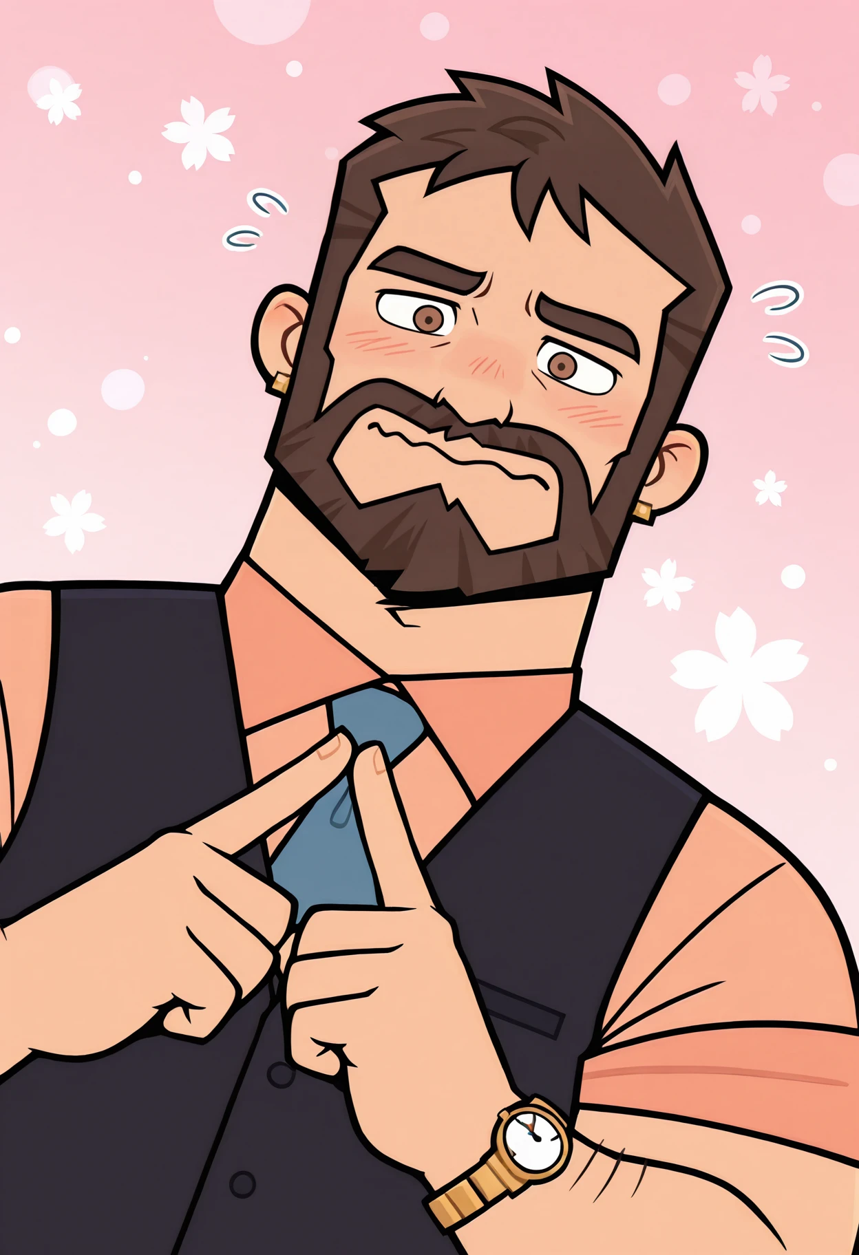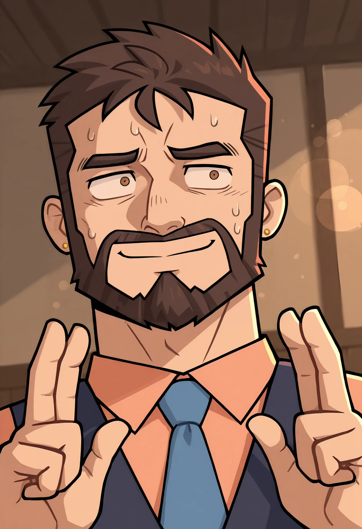Ted Gordon, male, male, brown hair, short hair, beard, facial hair, brown eyes, small gold earrings,