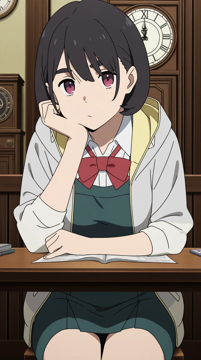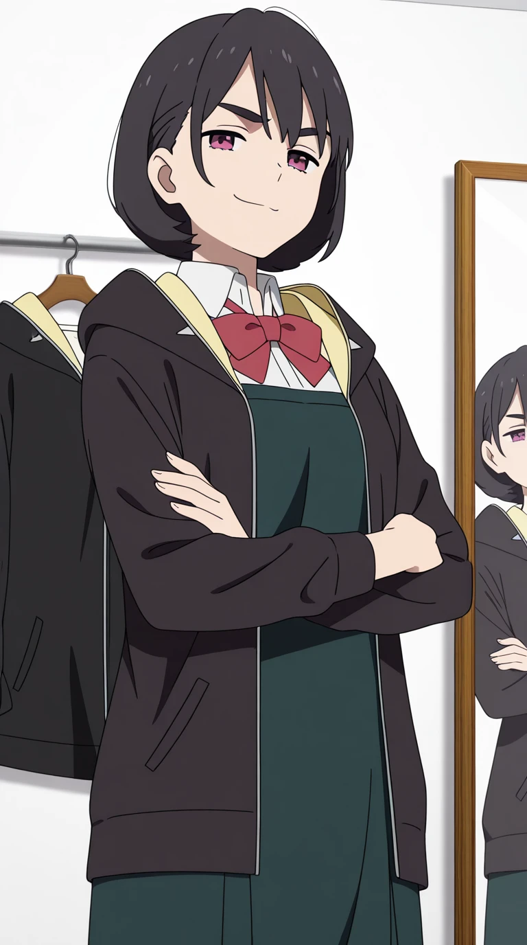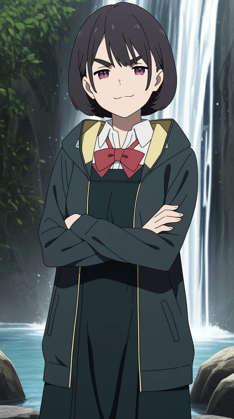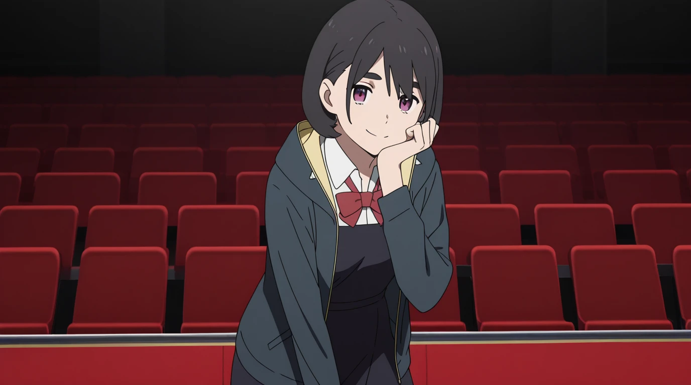 aoi aioi, short hair, black hair, red eyes, purple eyes, mature female, small , anime screencap,