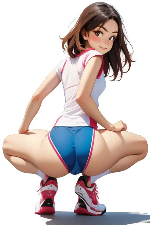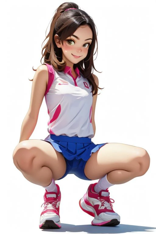 bckvwcmlt30 : sport wear, skirt/ short/ tennis outfit, sometimes ball/racket variant size 70% white outfit , squat 50% ,cameltoe 10%