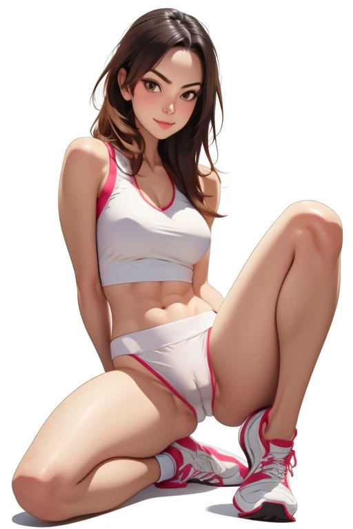 cameltoe : sport bra , cameltoe cover panties, 70% white outfit