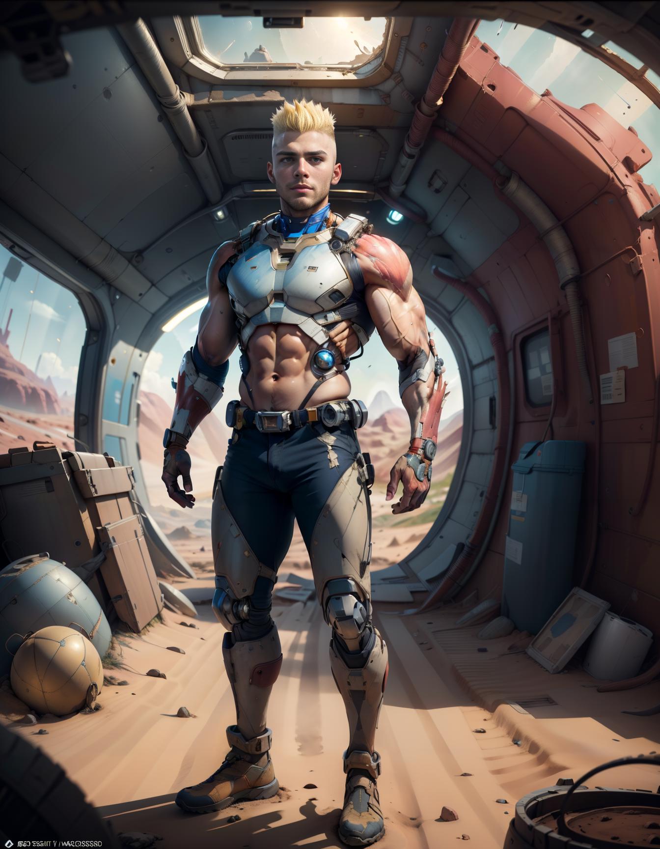 Trigger word is biosoldier, use a strength of 0.8-0.9 and also prompt exposed shoulders to get the red muscles fibres rather than the shoulder armor. CFG 7-9 works best.