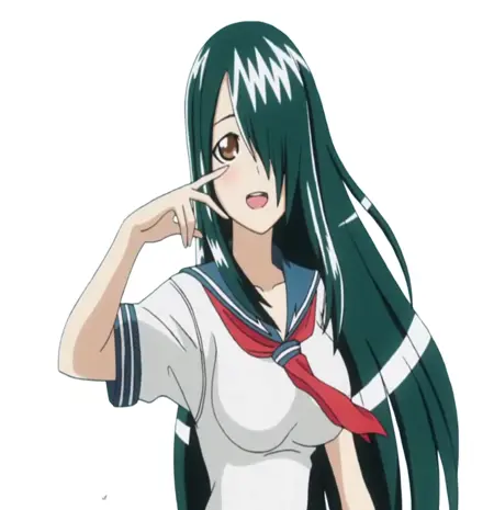 Trigger: Fuuka_Saitou, hair over the right eye, long hair, dark green hair, brown eyes,thin, tall, large breasts,