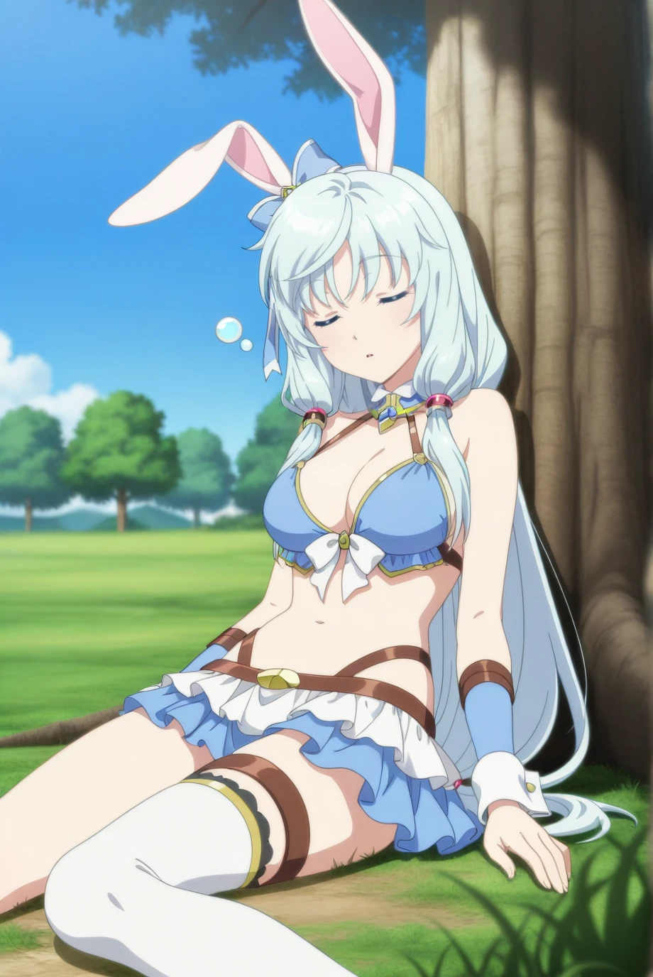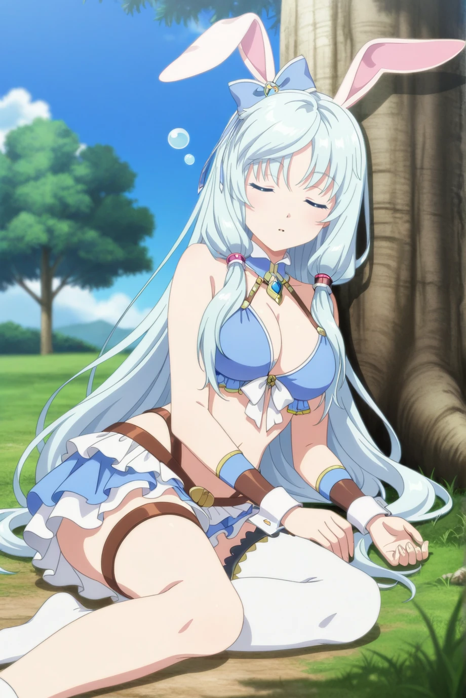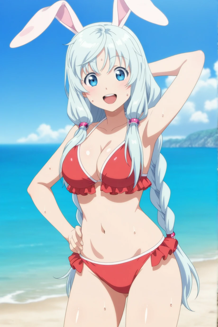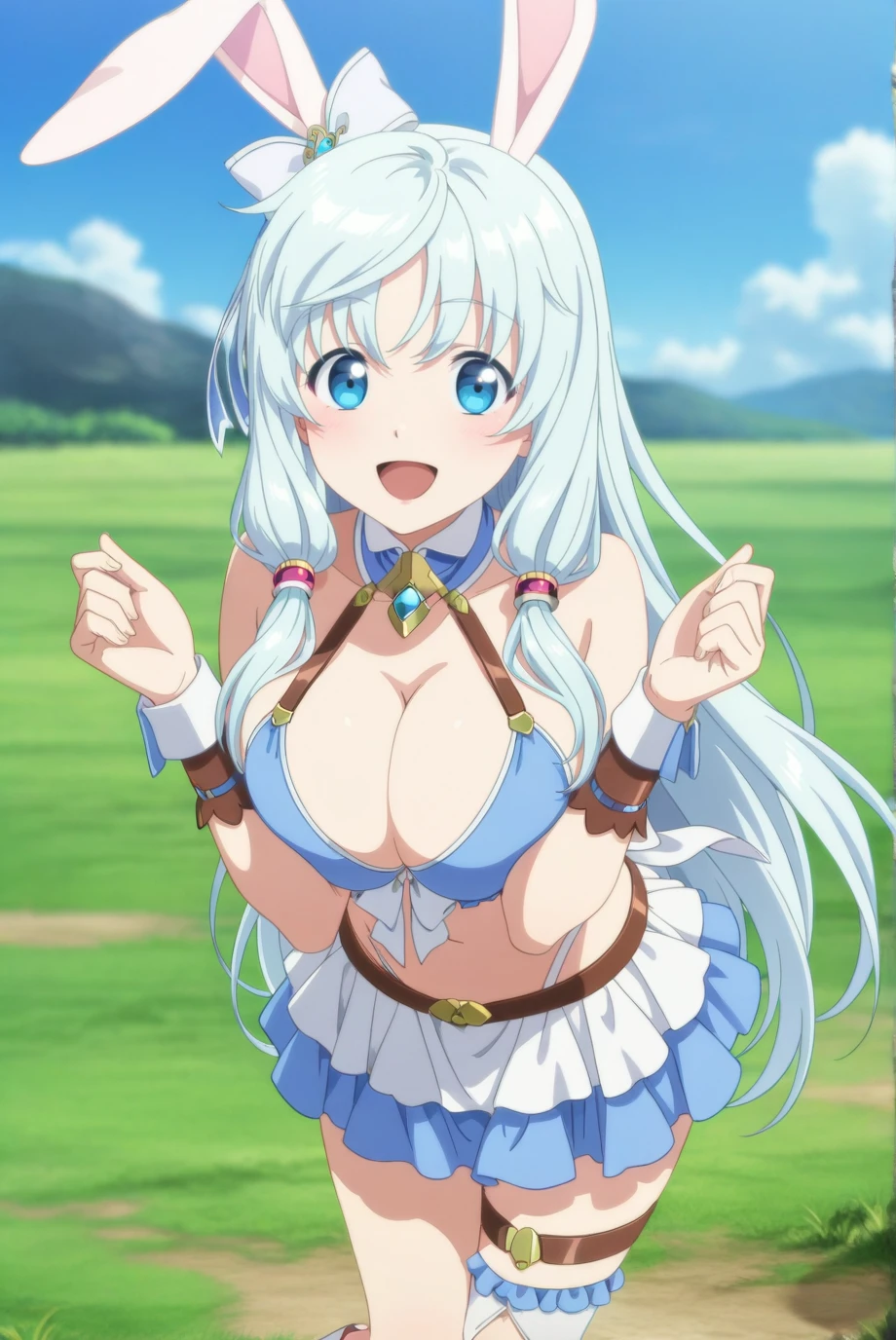 <lora:SheaHaulia-IL-v1-08:0.8>, ChopioShea, rabbit ears, very long hair, light blue hair, hair tubes, blue eyes, looking at viewer, anime coloring, large breasts,