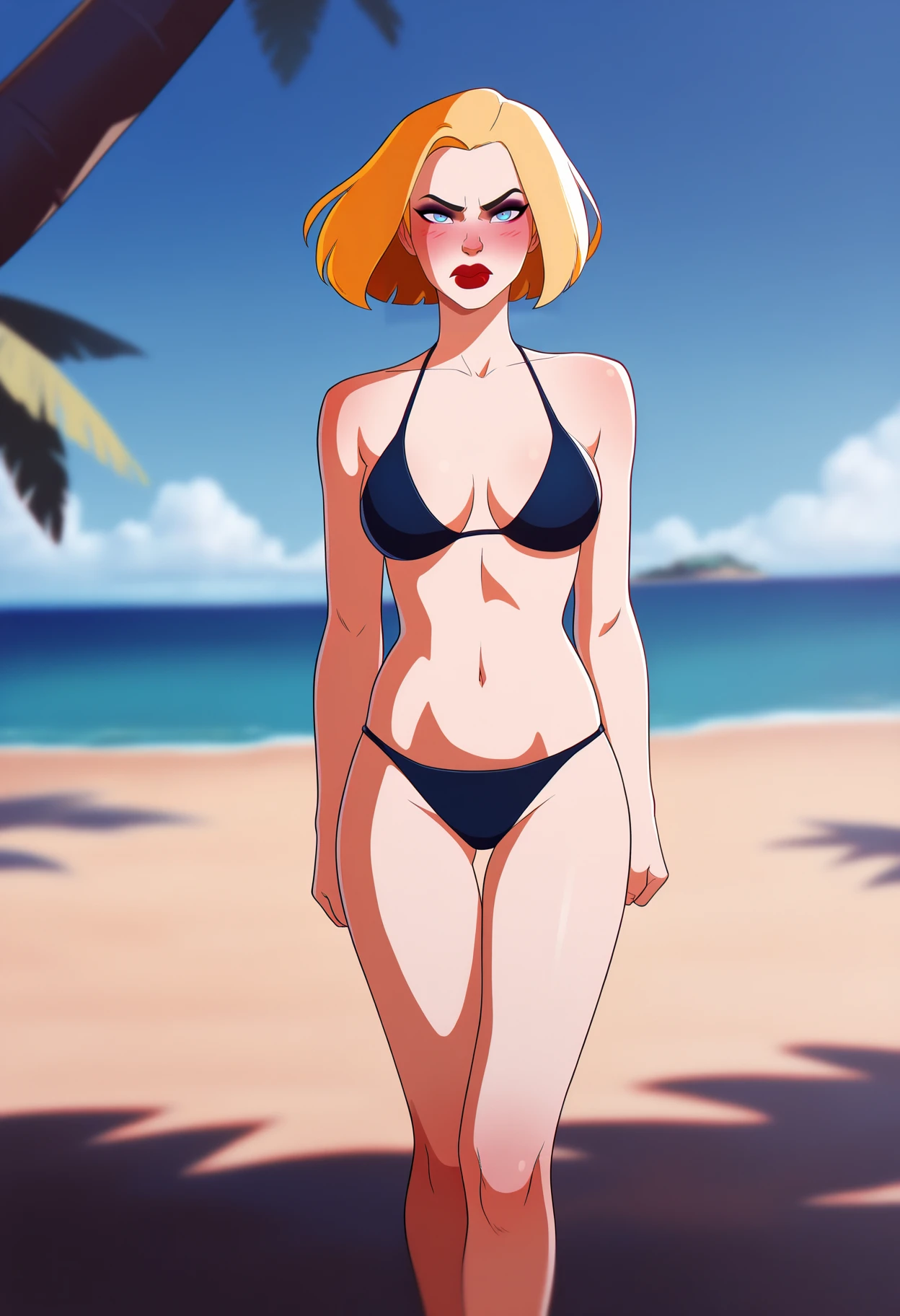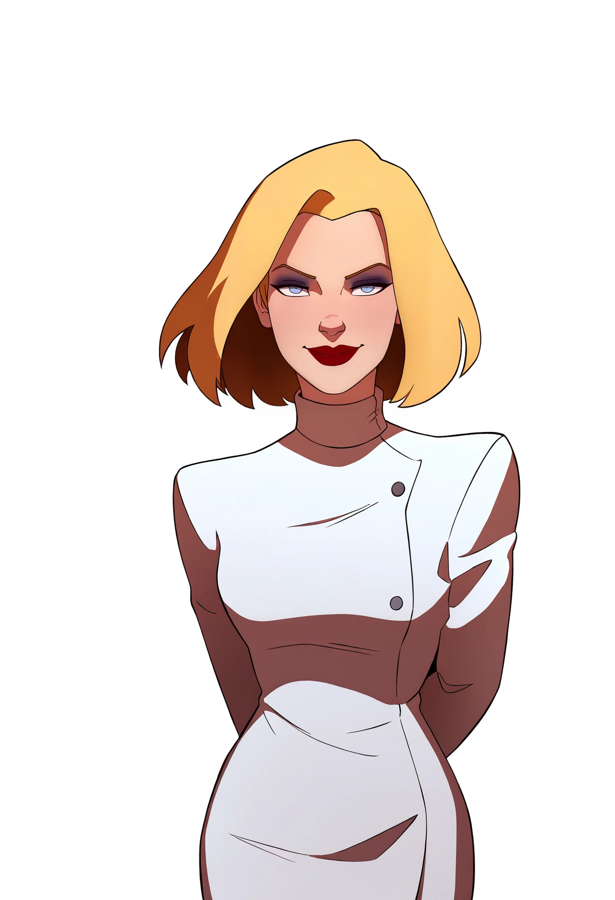 1girl, agentl, blonde hair, short hair, blue eyes, red lips