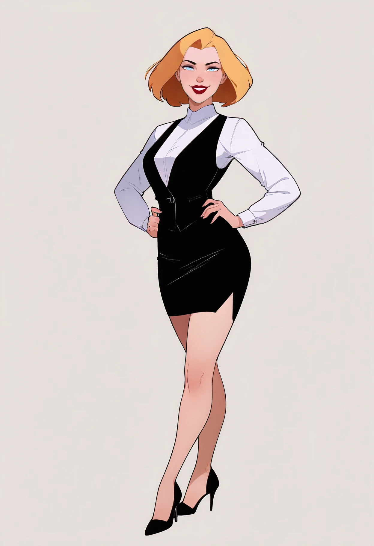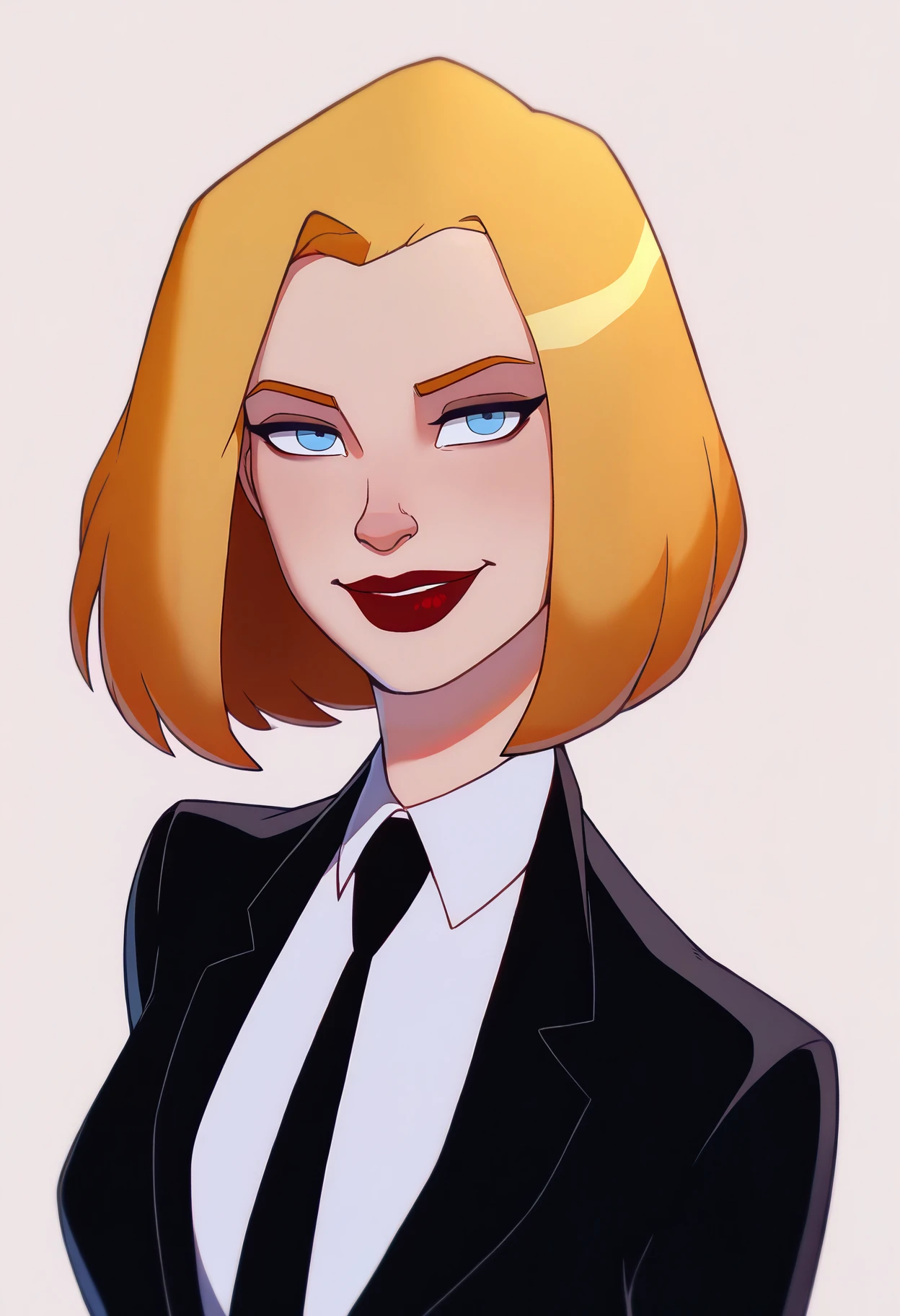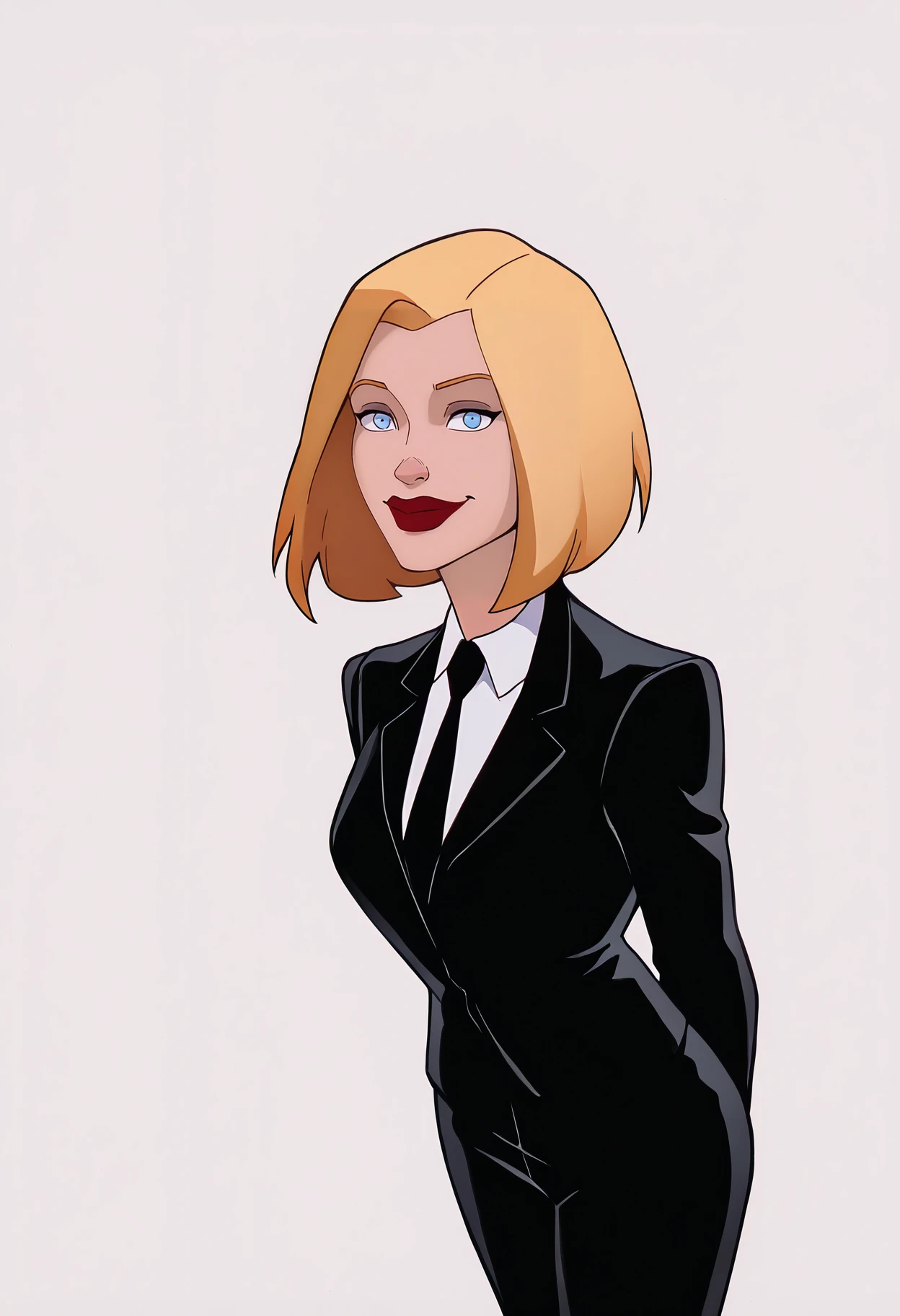 Basic prompts : 1girl, agentl, blonde hair, short hair, blue eyes, red lips