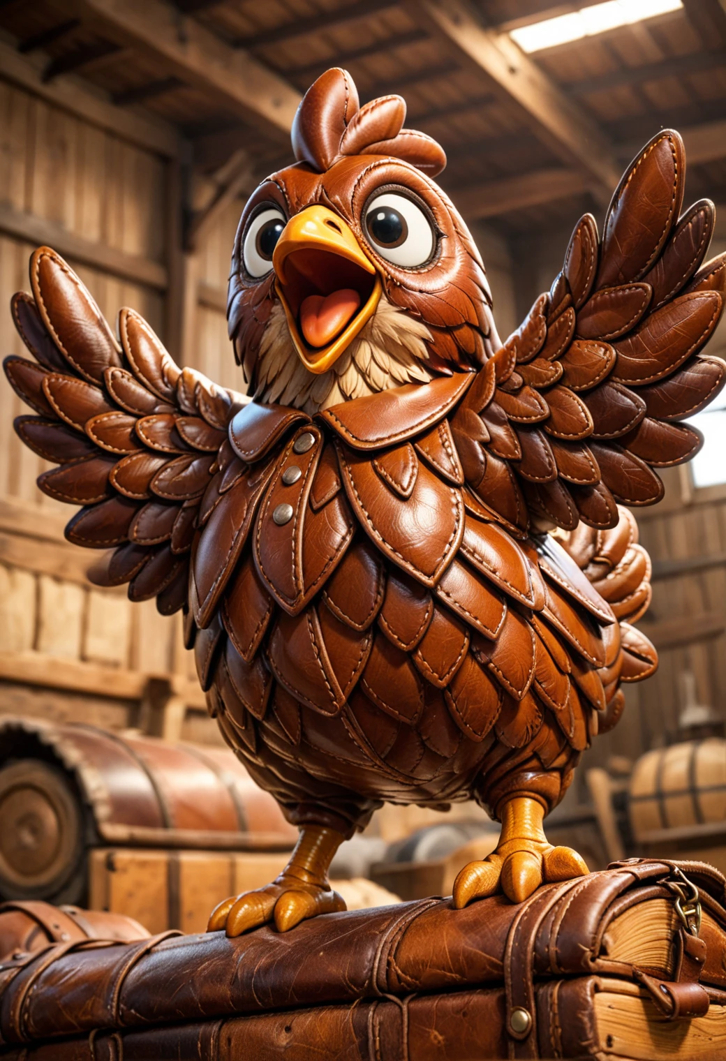 Daily Challenge helper LoRA (or a strong stand-alone style) focused on transforming characters and creatures into cute, handcrafted figures made entirely of leather.