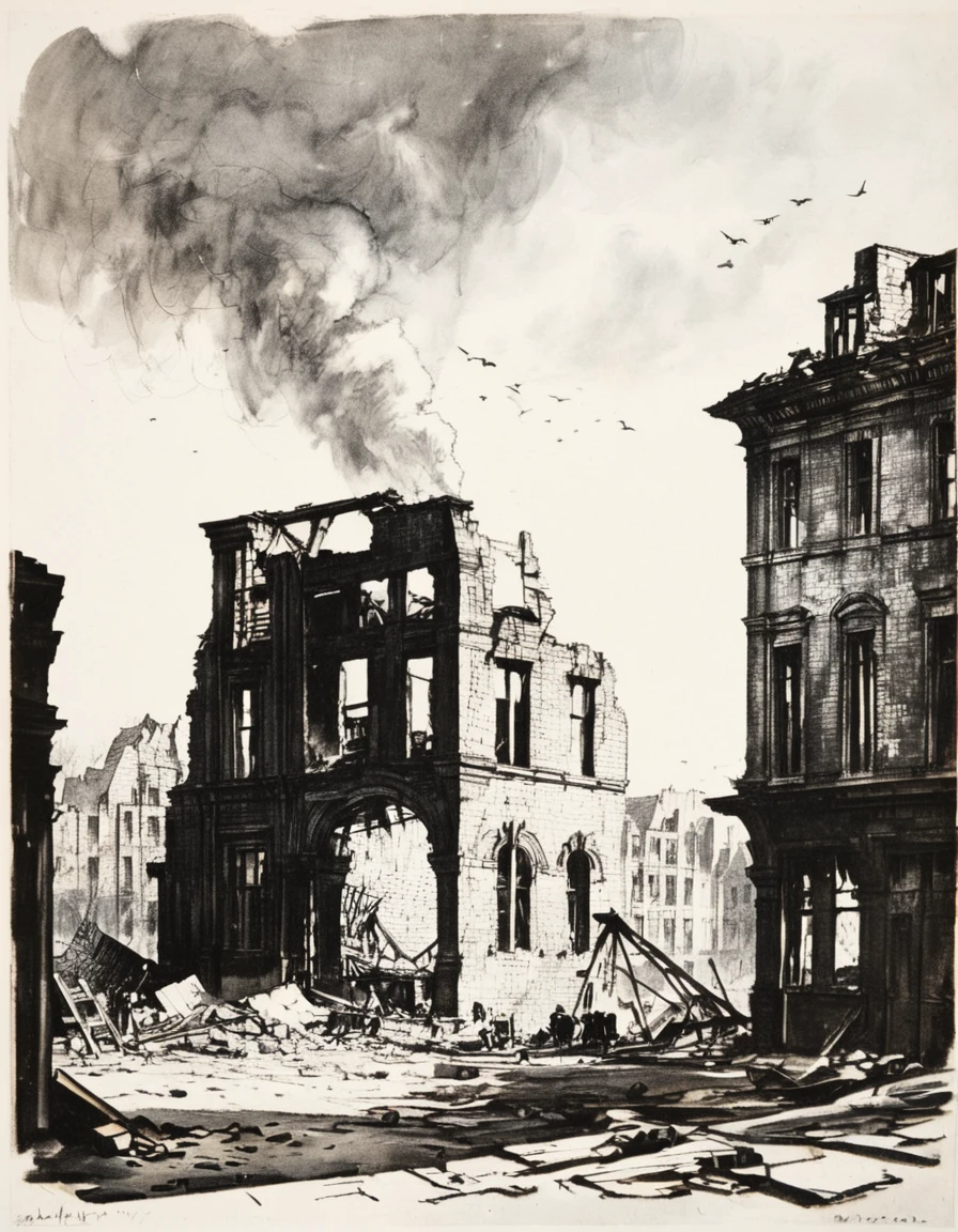 This is a LoRA dedicated to the style of Scottish artist, David Muirhead Bone (aka Muirhead Bone) Best known for his etchings and lithographs of industrial, architectural subjects, and the World Wars.