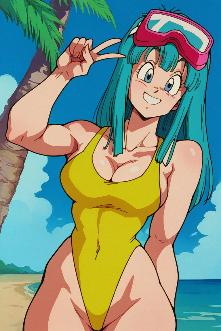 yellow swimsuit, one-piece swimsuit, highleg swimsuit
