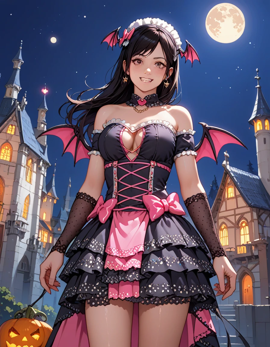 kokorohalloween, black dress, hair orgment, pink ribbonDescription