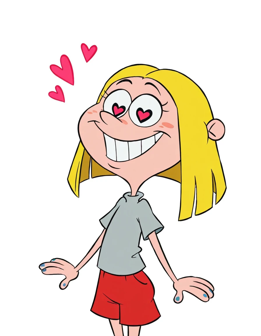 This LoRA perfectly replicates May Kanker, the youngest, strongest, and most unhinged of the Kanker Sisters from Ed, Edd n Eddy (voiced by Erin Fitzgerald). A blonde, buck-toothed, lovesick brute who’s obsessively fixated on Ed, May is pure chaotic puppy energy mixed with terrifying strength and zero social filter. She’s the muscle of the trio: loud, clingy, and always ready to tackle-hug (or tackle-crush) her “boyfriend.” The model locks her classic 1999–2009 design: messy blonde hair, braces, and perpetual heart-eyed mania.