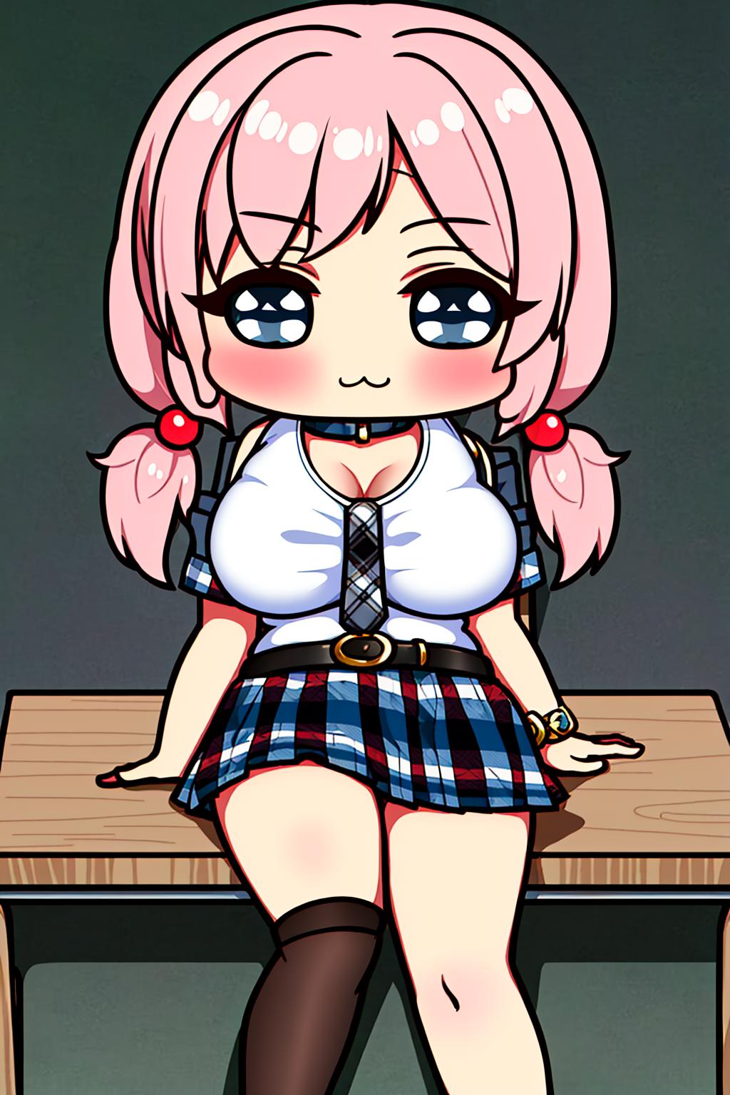 The goal of this LORA is to produce curvy chibi(-ish) characters. For best results, use the trigger words: chibi, large breasts (the breast size can be adjusted up or down to suit your needs)