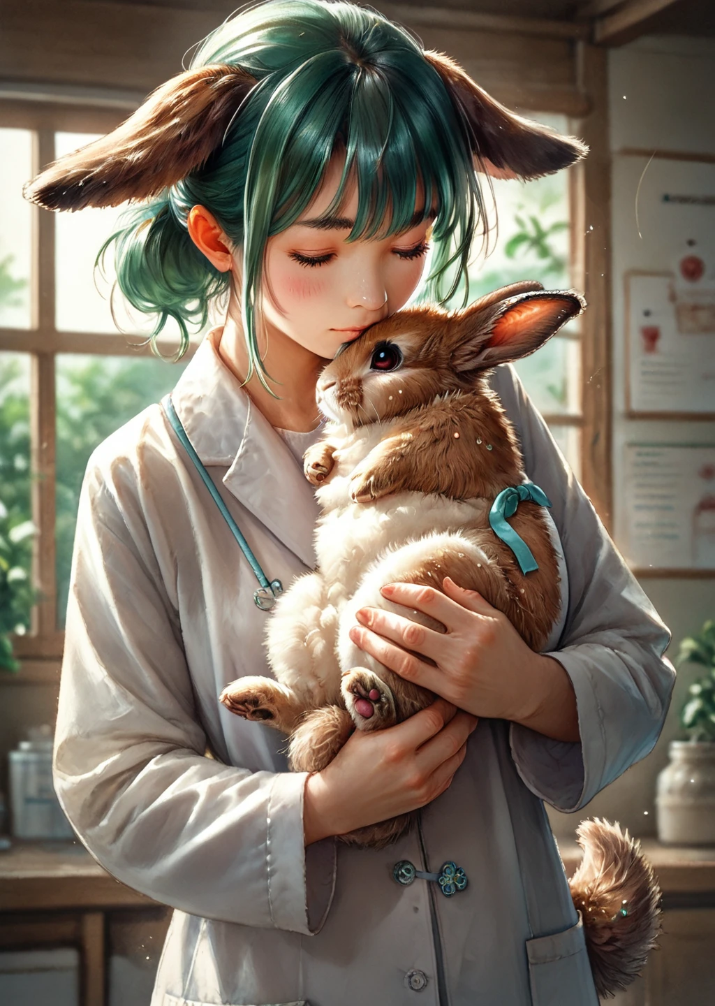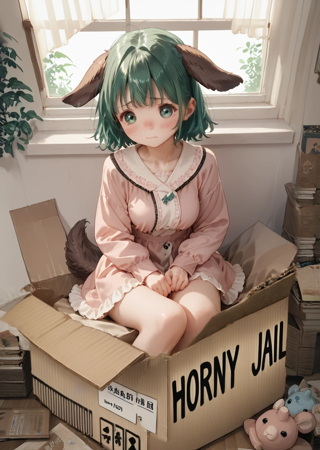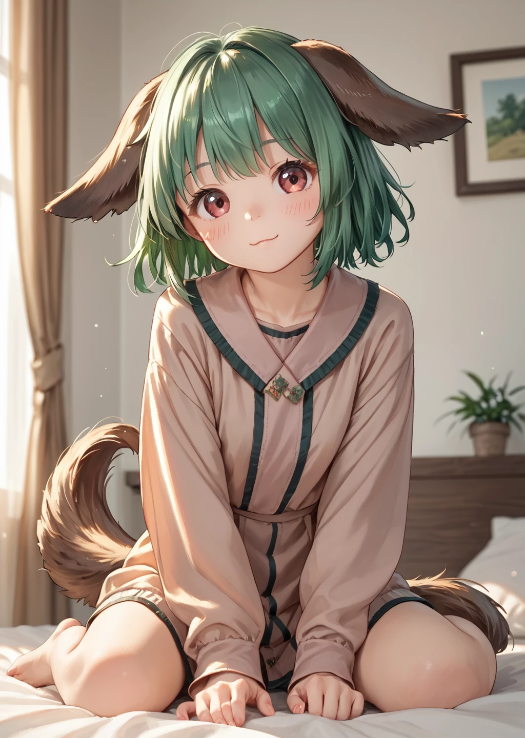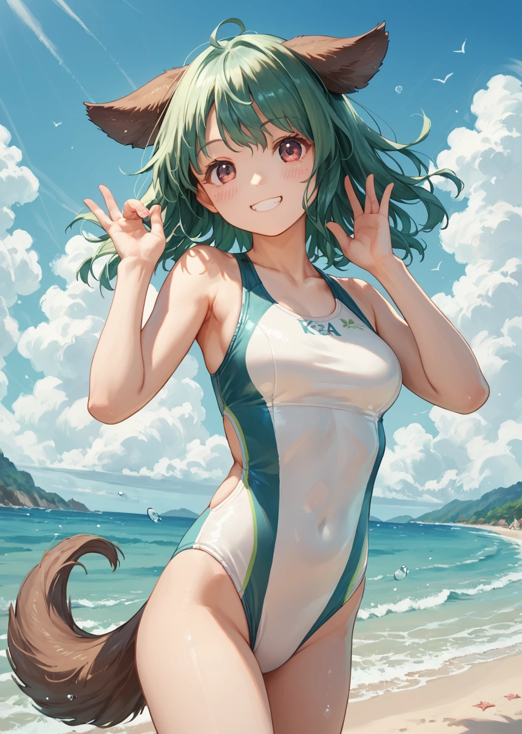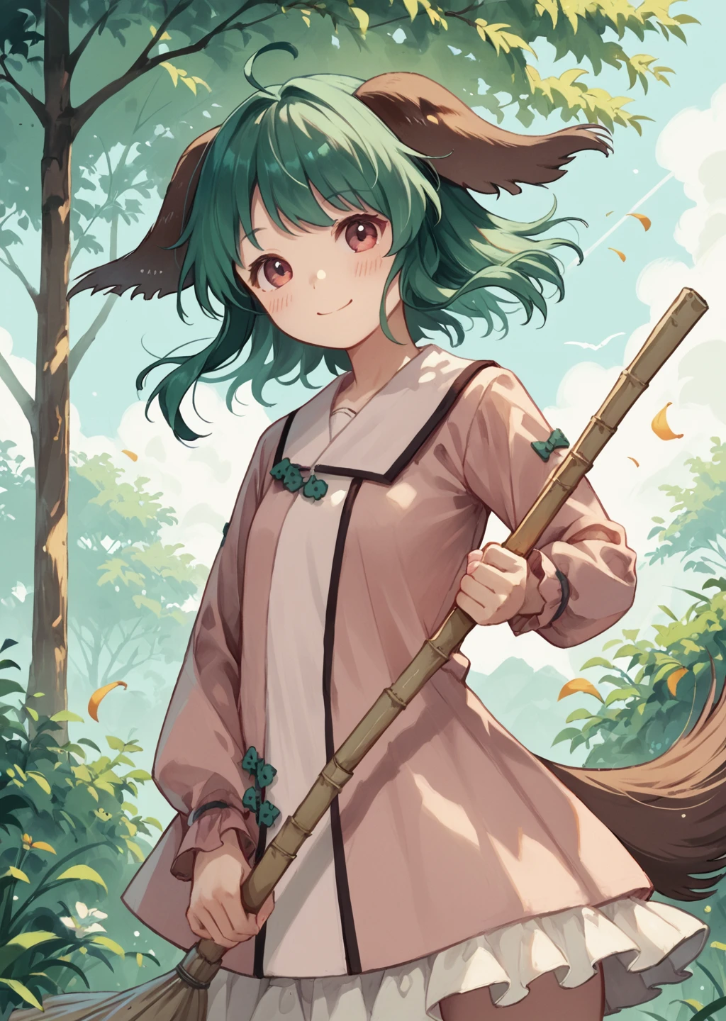 kyokaso, normal_outfit, 1girl, animal ears, tail, green hair