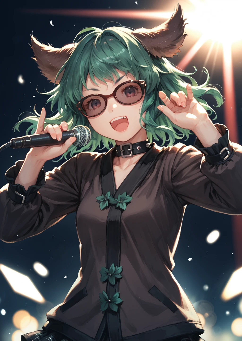 normal_outfit, 1girl, animal ears, tail, green hairAnd the goth version: