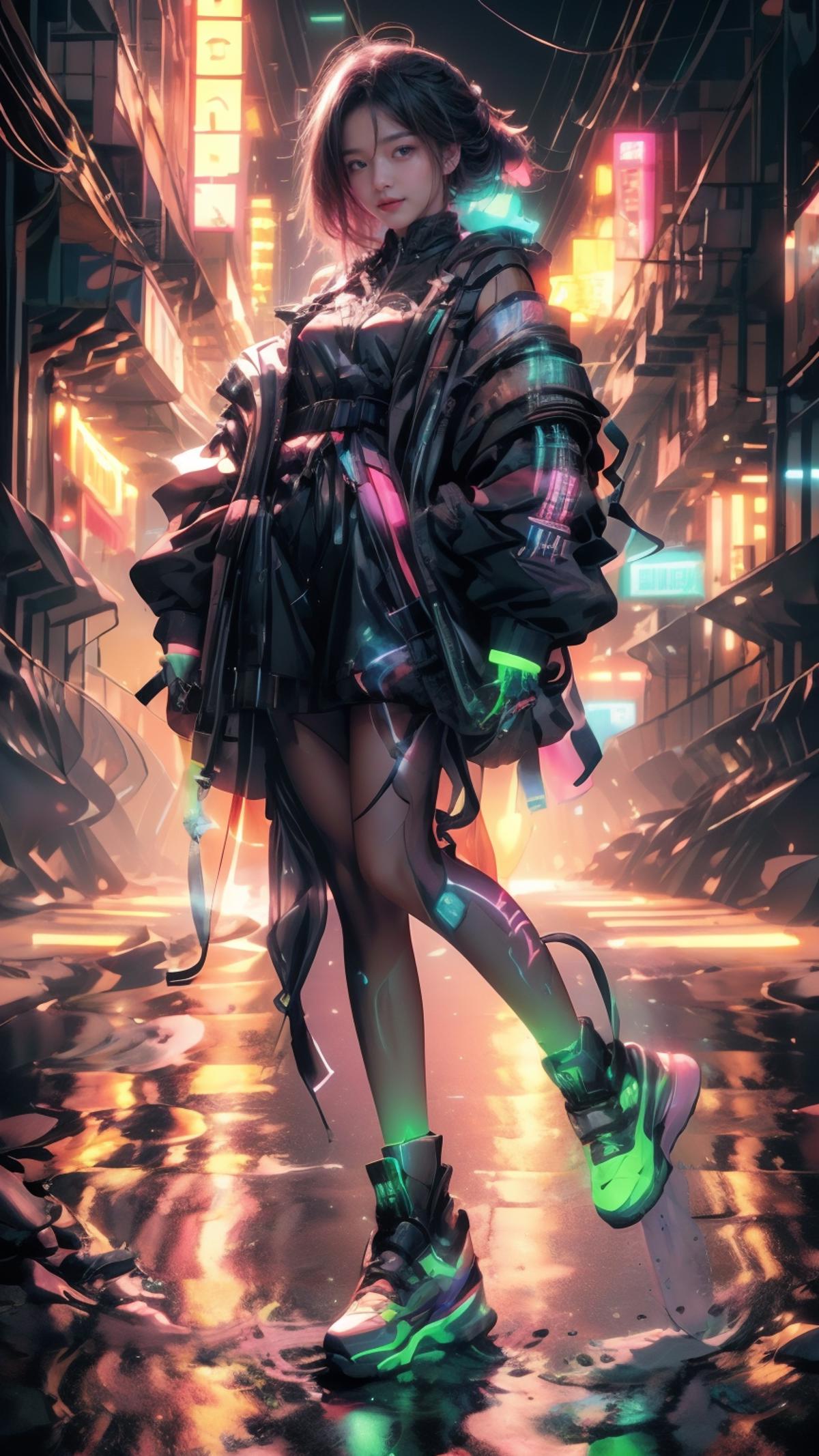 可以增加赛博朋克的感觉,搭配《(neon)CyberpunkAI》lora有奇效,请一定要尝试!