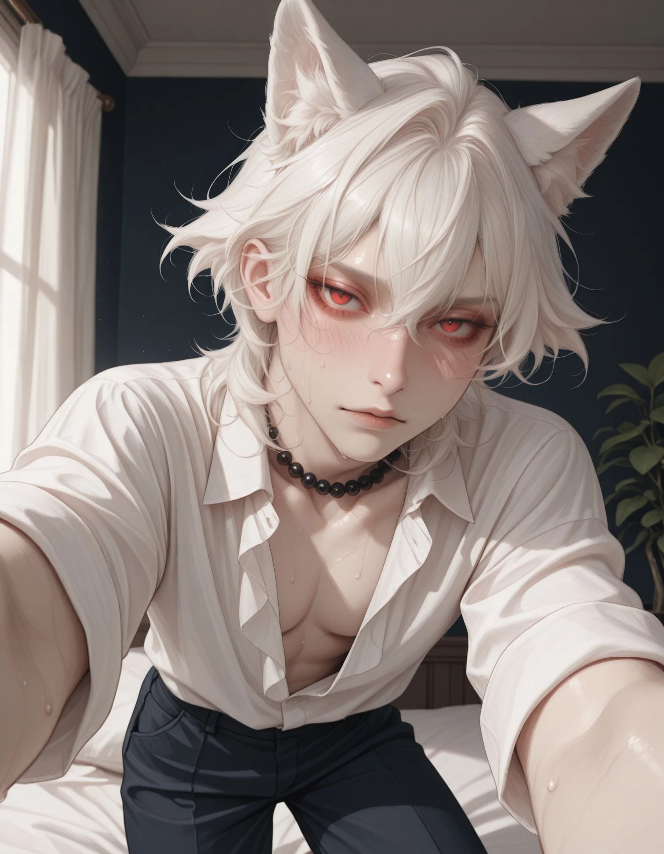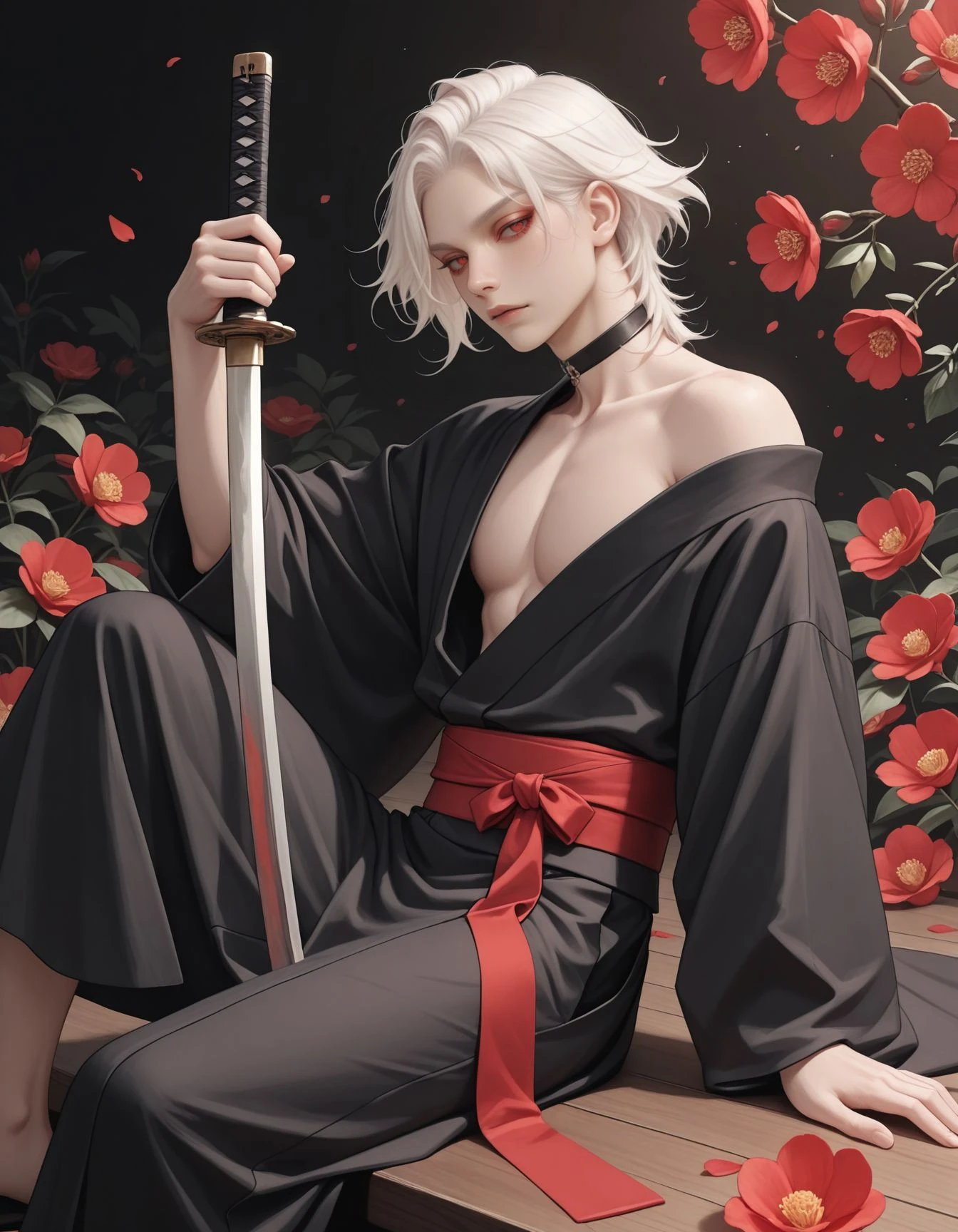 OCL3st4t, 1boy, male Focus, red eyes, White hair