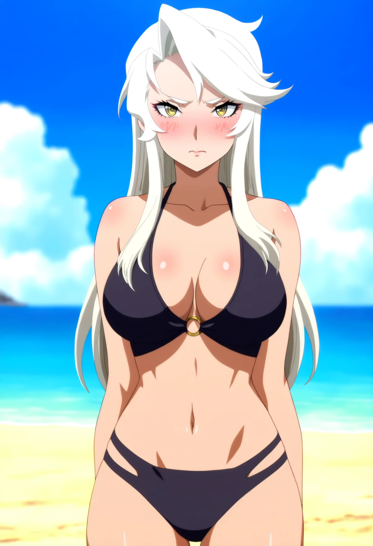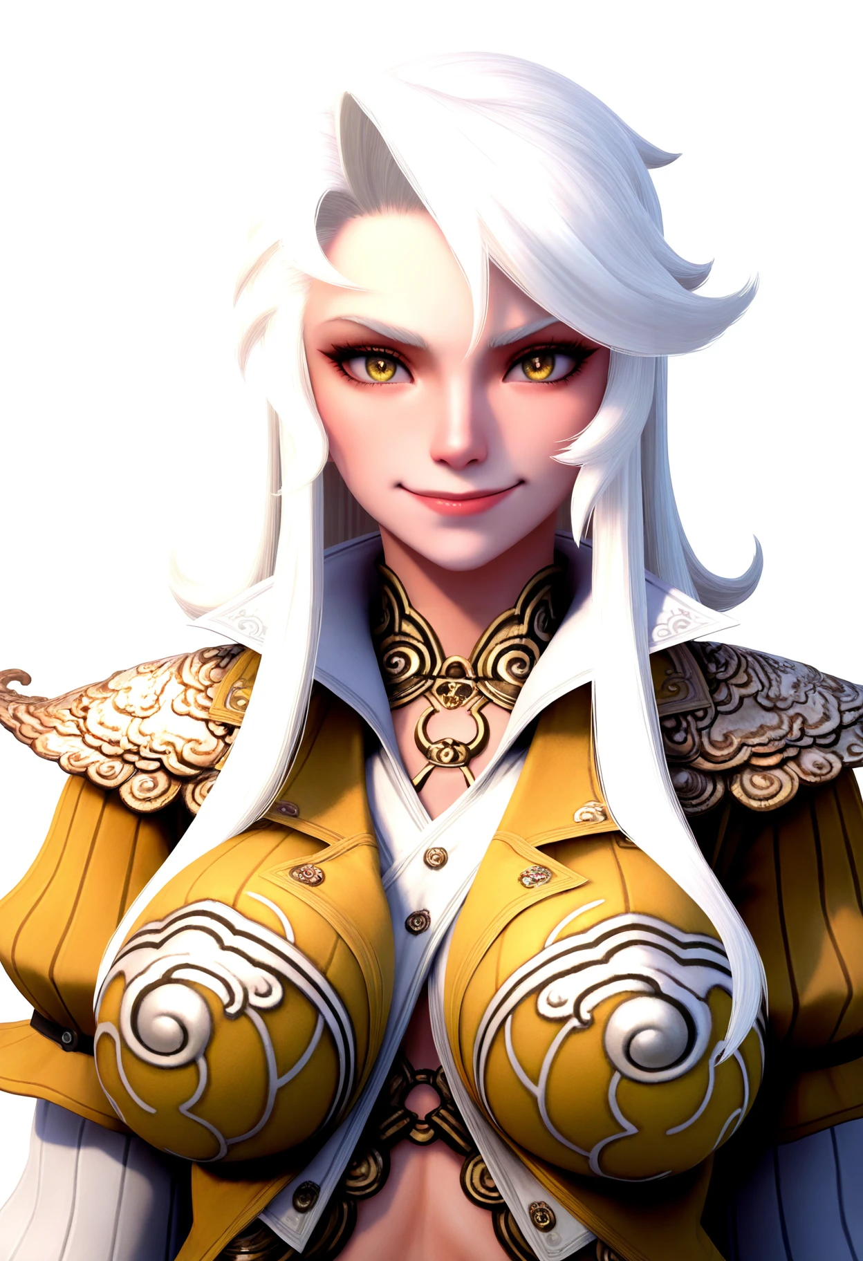 Basic prompts : 1girl, olga, white hair, yellow eyes