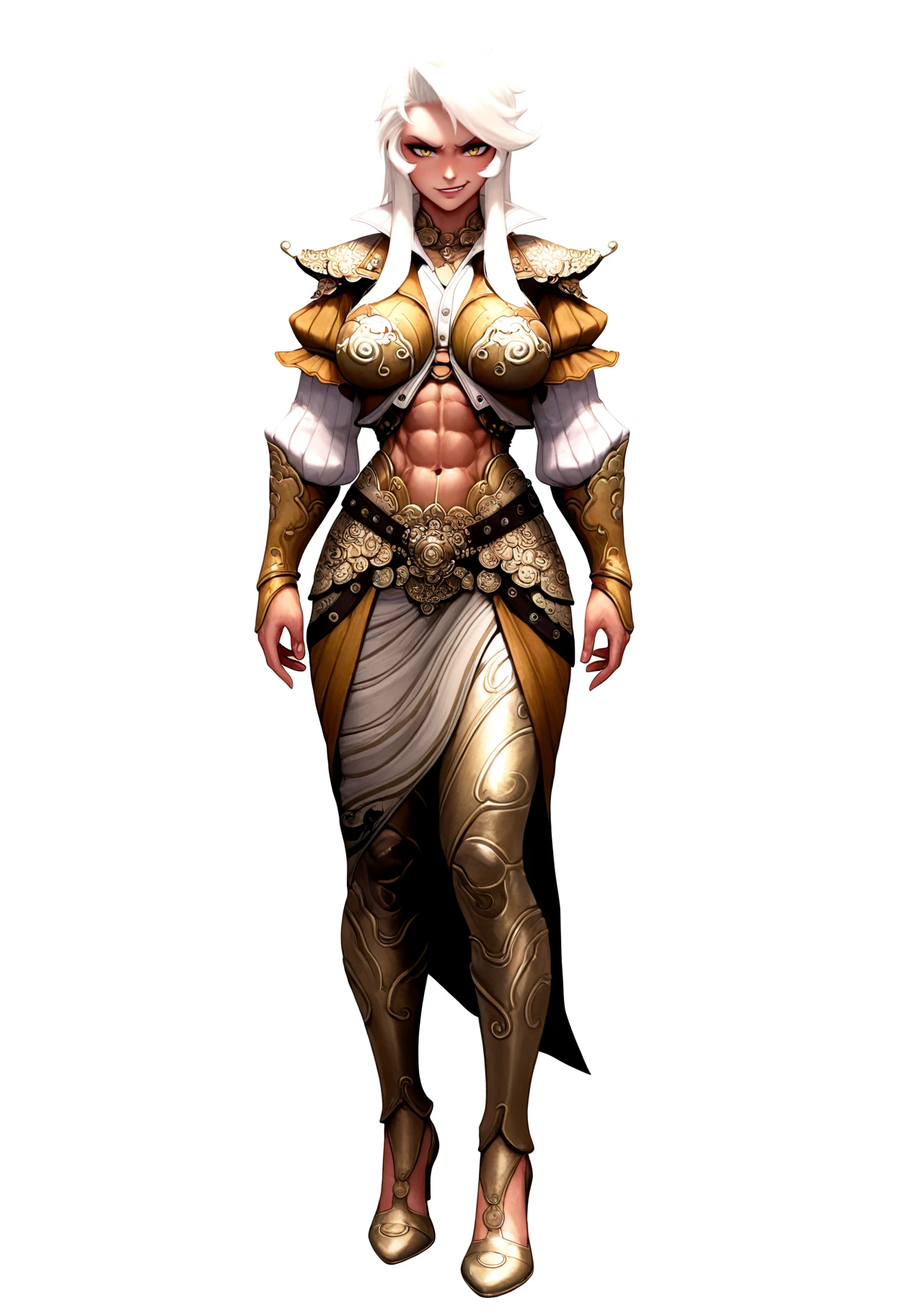 Outfit prompts : armor, large breasts, navel, abs, midriff, high heels