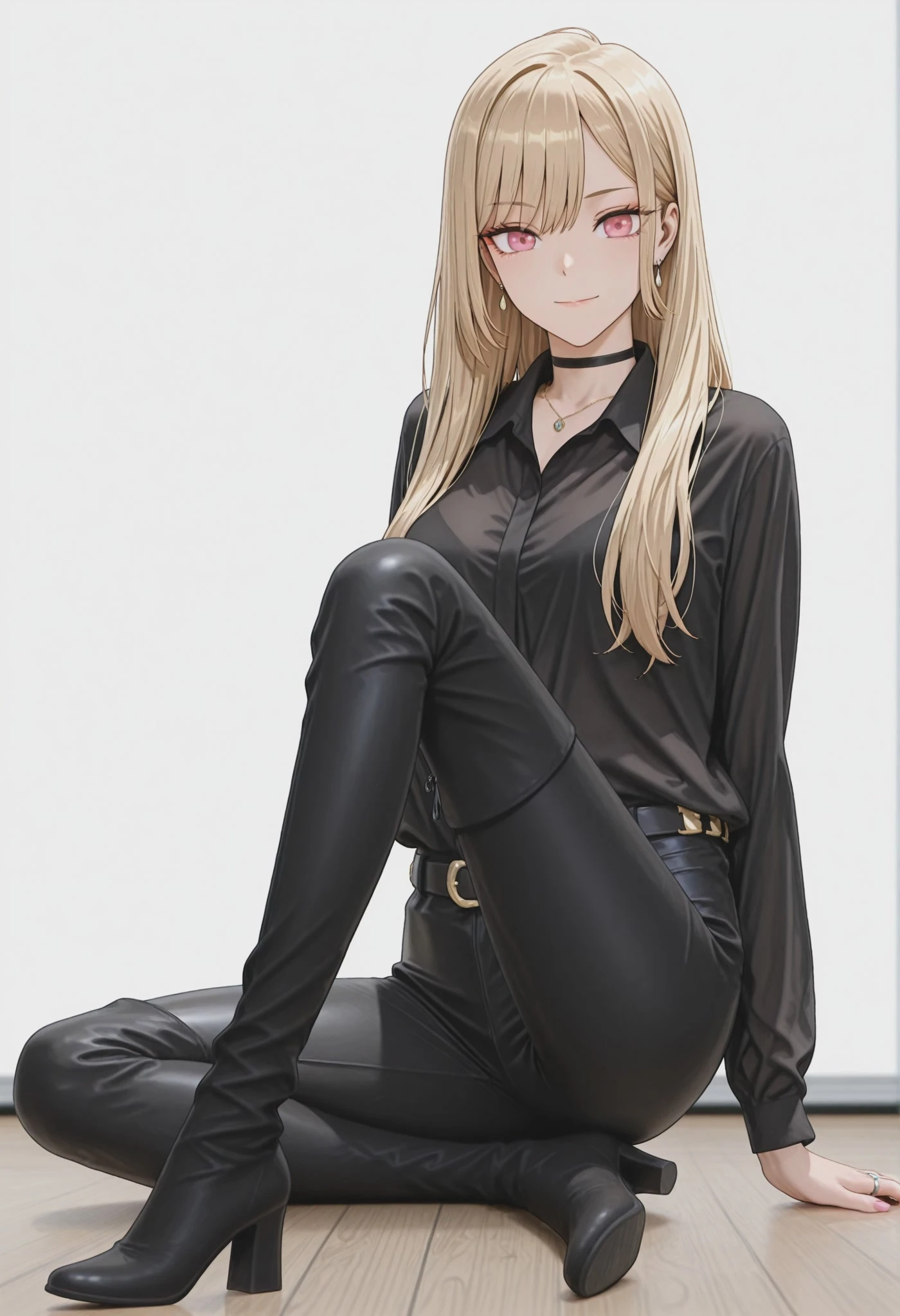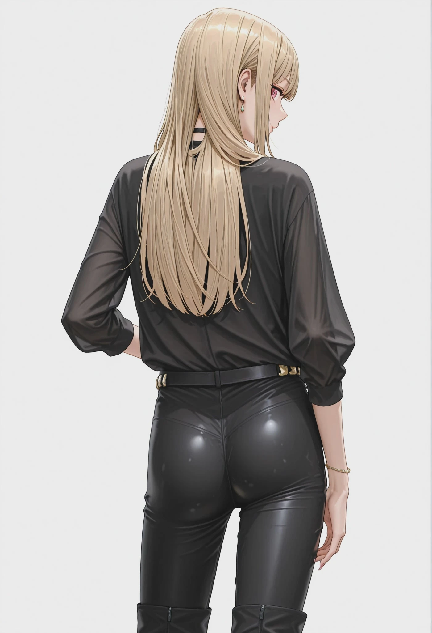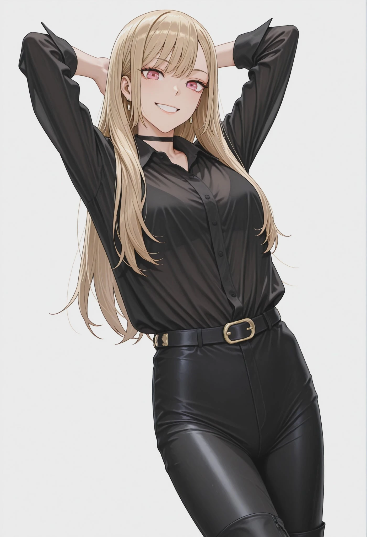 black belt, black pants, leather pants