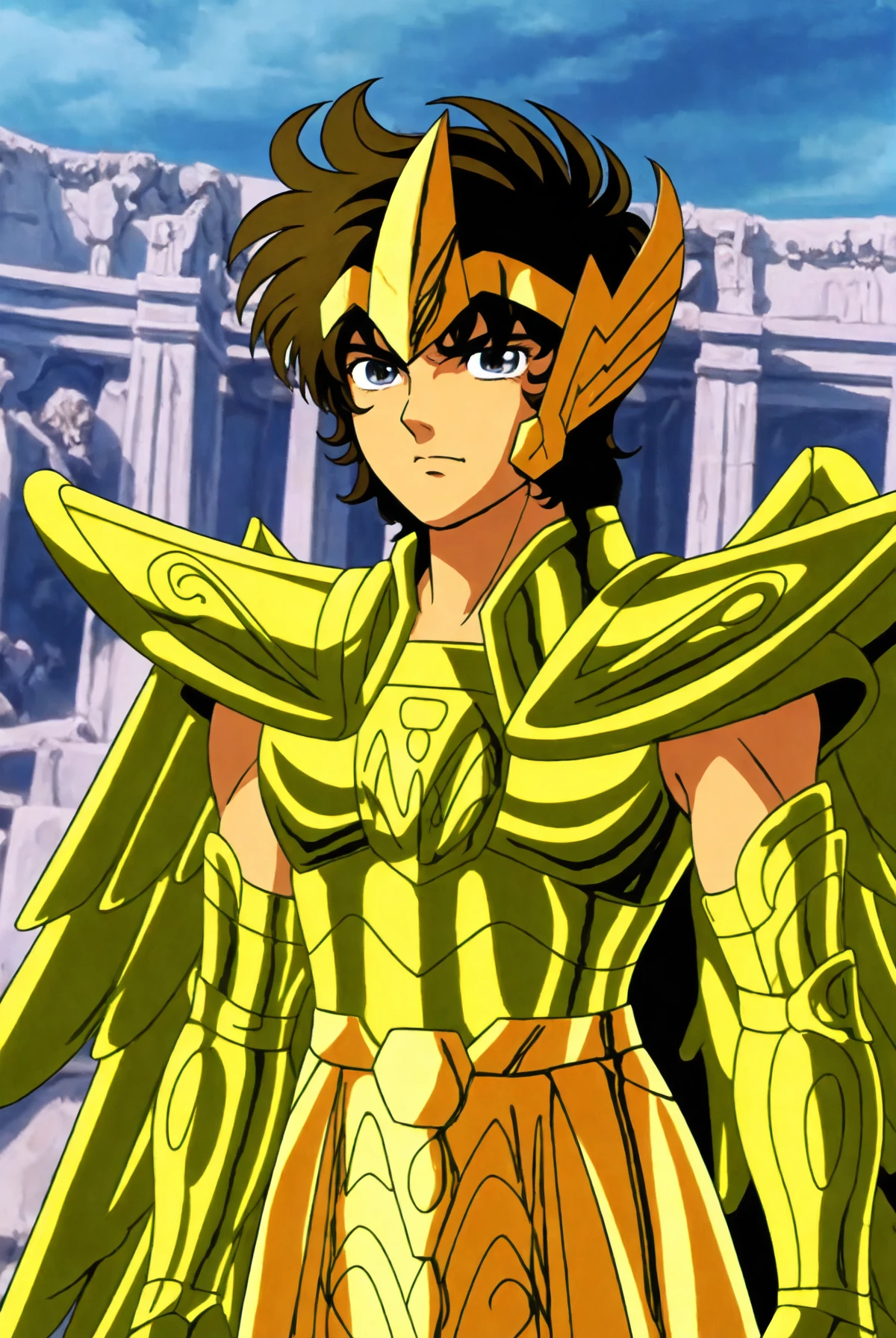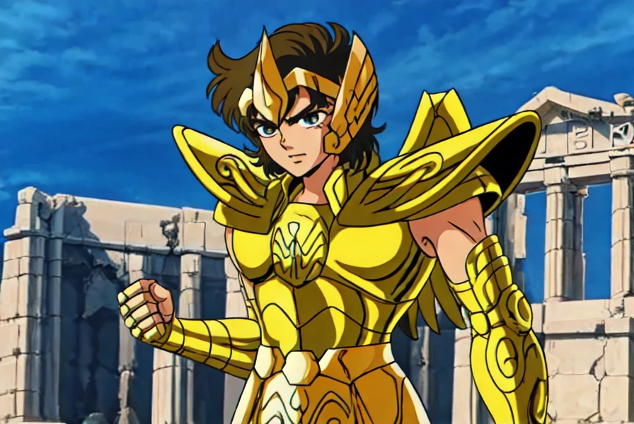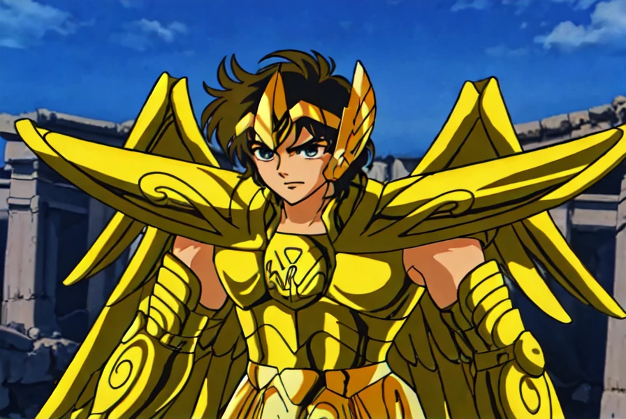 Before he died 13 years ago, he handed Athena as a baby and her Golden Cloth into the care of Mitsumasa Kido, who was traveling in Greece. Since then, Aiolos was considered a traitor in the Sanctuary, which was commanded by Saga disguised as the Grand Master. -- Rights to TOEI ANIMATION