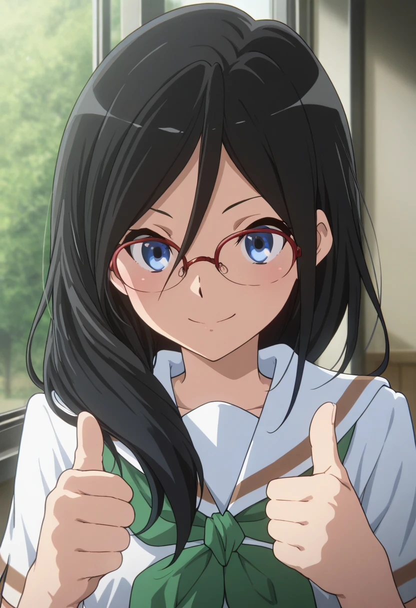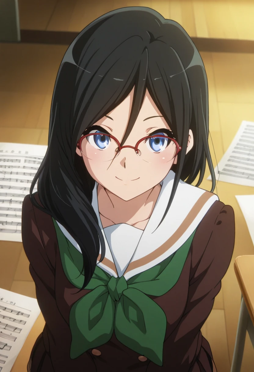 Trigger Words: tanaka asuka, long hair, black hair, glasses, blue eyes