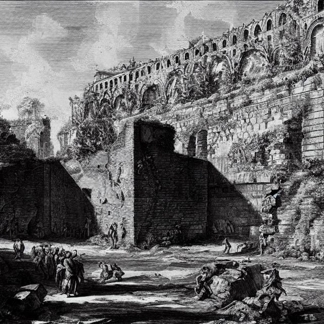 however, their resolution, tagging and chopping is all over the place, this model reinforces the concepts and art style based on high quality 1024 full-sized images without borders text and descriptions from the original artworks of Giovanni Battista Piranesi. they are based on high quality scans by the University of Tokyo library in the Kamei Collection. the images have been properly tagged and perfectly chopped as well as edited to remove numbers and comments and text embedded in the images.