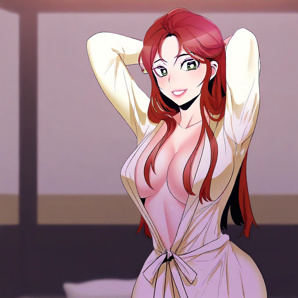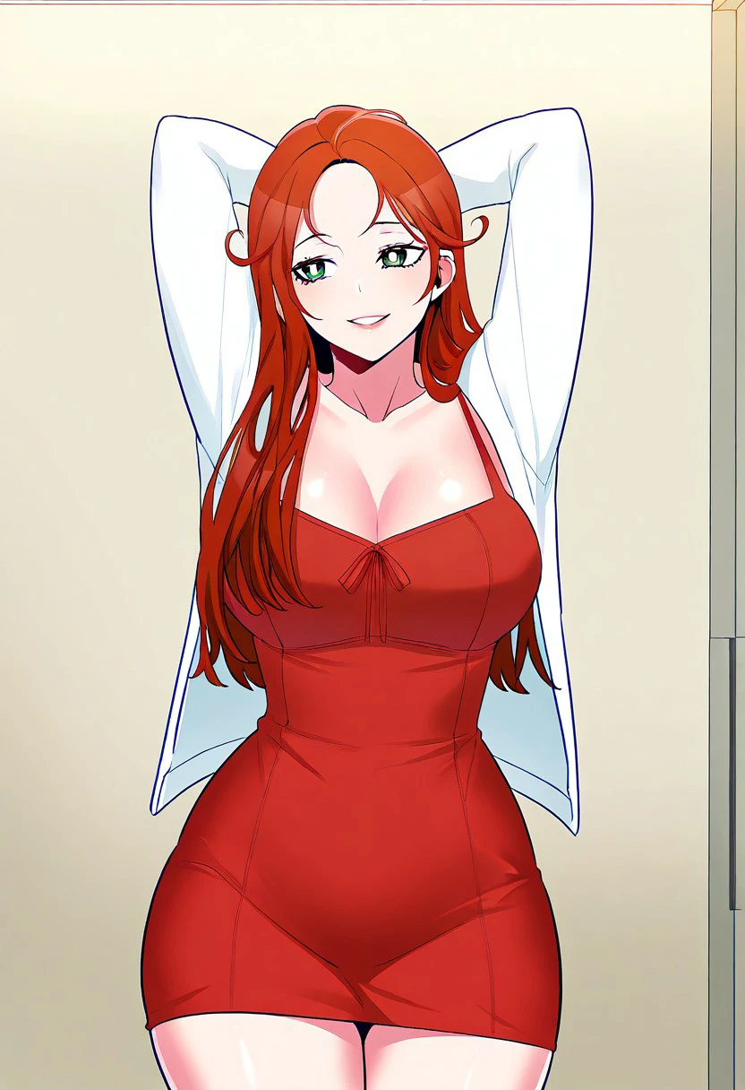 (( <lora:ji-ah:1> , ji-ah, thin waist, wide hips, beautiful skin, piercing green eyes, clear eyes, bright pupils, beautiful eyes, beautiful red hair, beautiful long hair, medium breasts, natural beauty, extraordinary beautiful woman, attractive woman, super sexy woman, lustful body, sexy woman with seductive obscene body, sensual body, voluptuous body, sexy beauty, no piercings, no piercing, ))