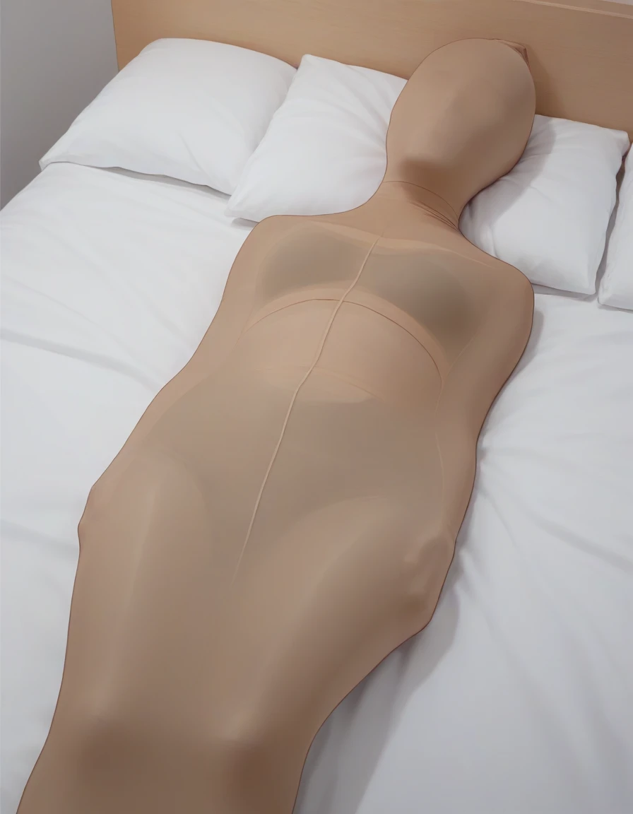 General Tags (use as needed): mummification \\(bound\\), restrained, encasement, pantyhose on head, pantyhose over face, flat hair, covered hair, arms at sides, arms behind back, arms in front, stretching cocoon, crossed arms, arms free, *see example images for more
