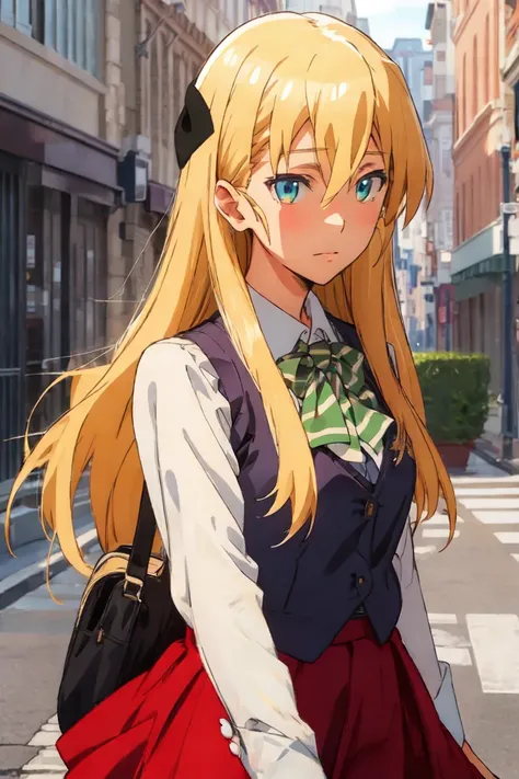 skirt, shirt, long sleeves, school uniform, white shirt, vest, red skirt,